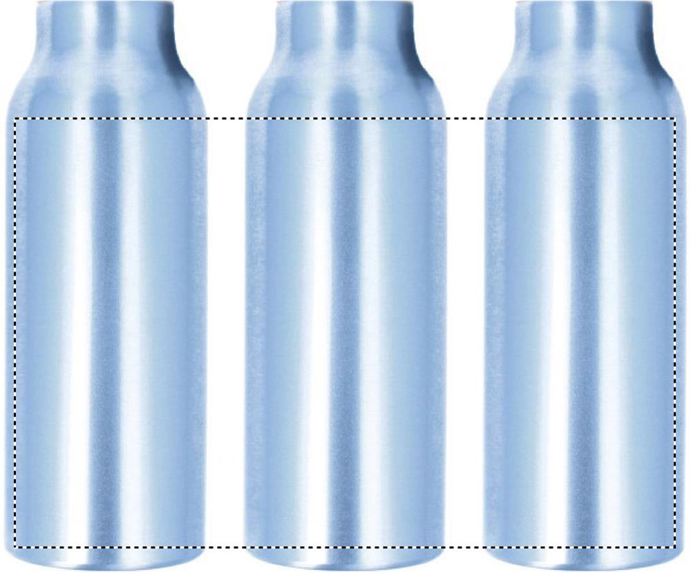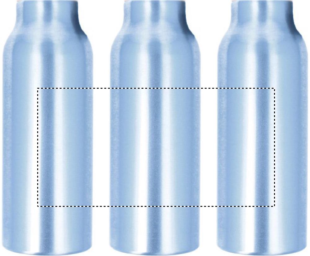 Single wall aluminium bottle with PP lid and silicone strap. Capacity: 500 ml. Leak Free.