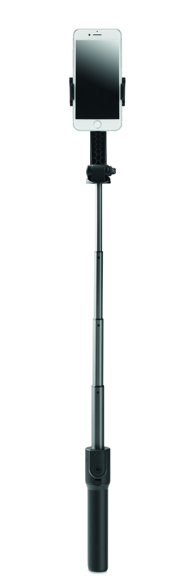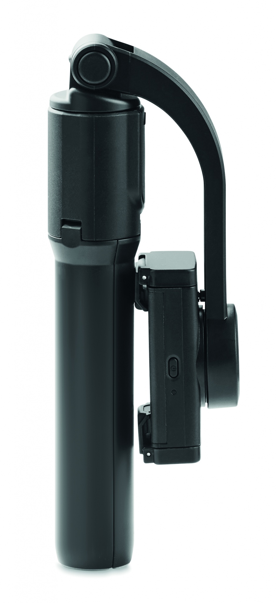 Telescopic smartphone holder and stabiliser with tripod functionality. 1-axis gimbal. 400 mAh LiB battery.