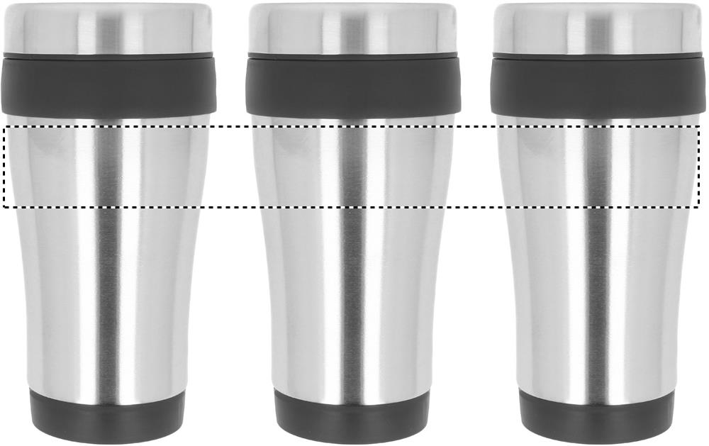 Double wall stainless steel travel cup with inner PP and lid. Capacity: 455 ml.