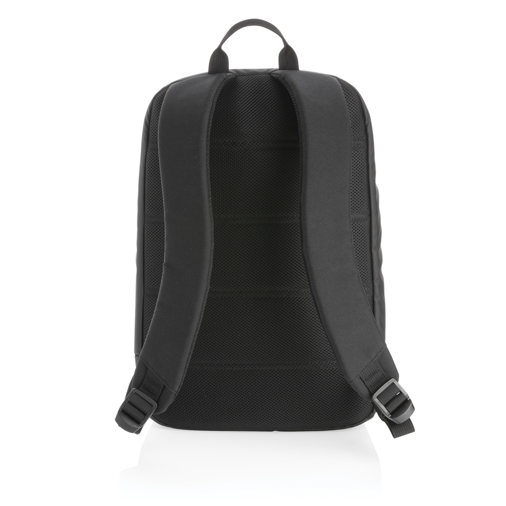 This unique Swiss Peak laptop backpack with UV-C sterilising pocket features a minimalistic design and has an integrated UV-C sterilising external front pocket, killing up to 99,9% of the bacteria on items placed inside the pouch. Perfect for sanitising your keys and phone for example while on the go in 3 minutes. The three UV-C LED lights inside are non-toxic and mercury free. The design will also ensure that the UV-C LED light will switch off automatically when the sterilising pocket is opened via the zipper so the user will not be exposed to the UV-C light. The backpack has a laptop compartment in the main pocket which fits a 15.6 inch laptop, 2 open pockets and 2 pen loops. Mesh padded back and straps for comfort. Including a micro USB cable which you can use to connect your powerbank with to charge the UV-C pouch. Exterior 600D and 900D PU coated polyester. Interiour 210D polyester. Compliant with EN62471. PVC free.