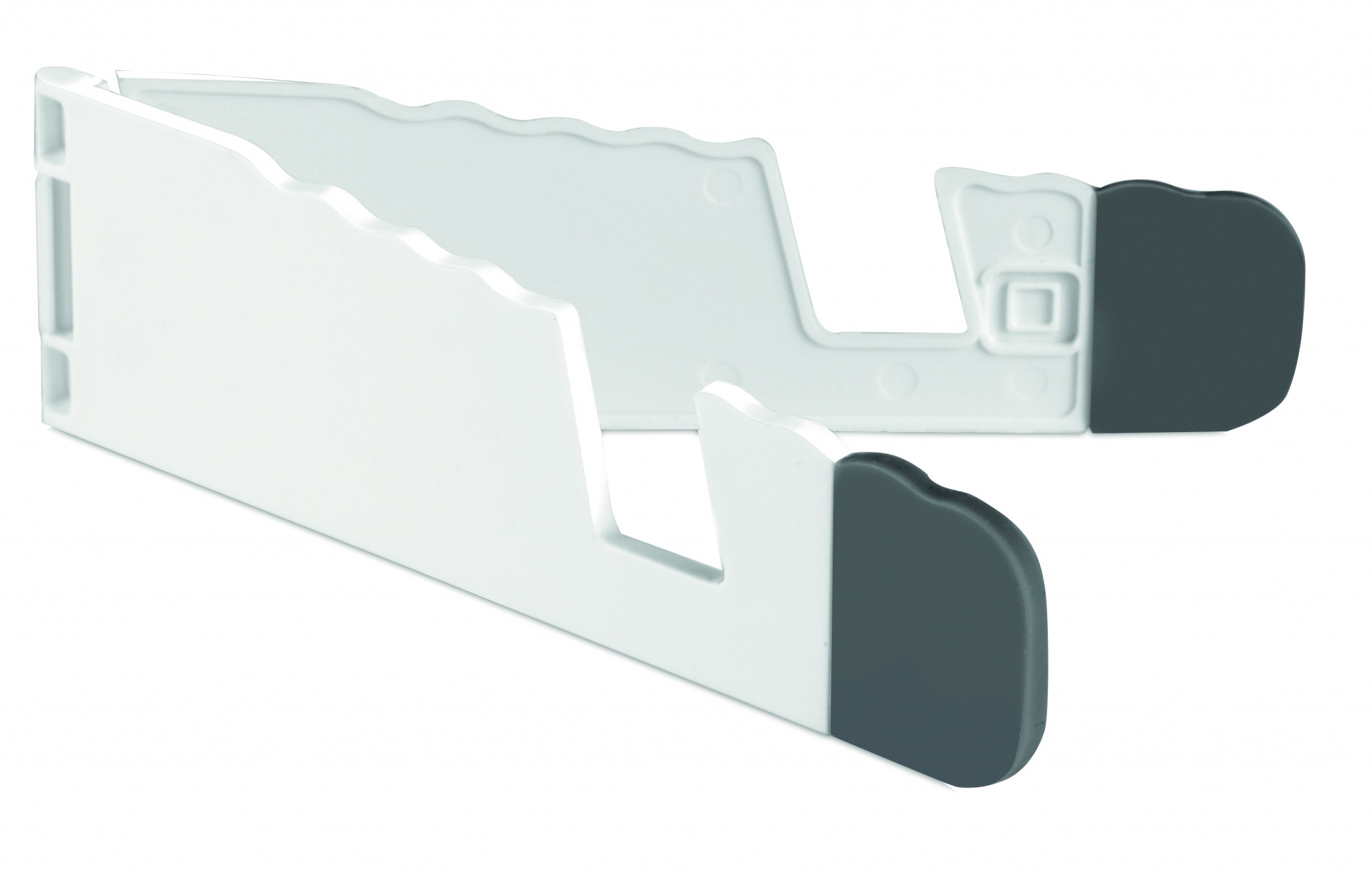 Graphic tablet and smartphone foldable holder in white ABS with grey silicone tip.