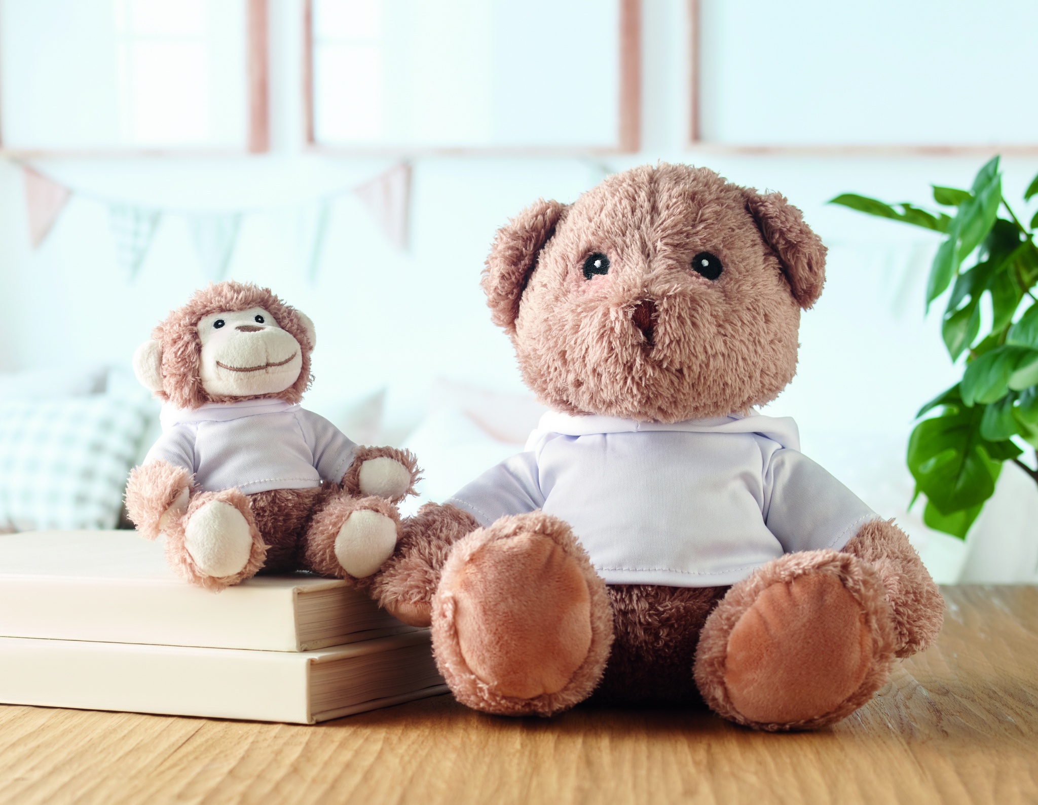 Large teddy bear wearing a hooded sweater. Ideal for sublimation print.