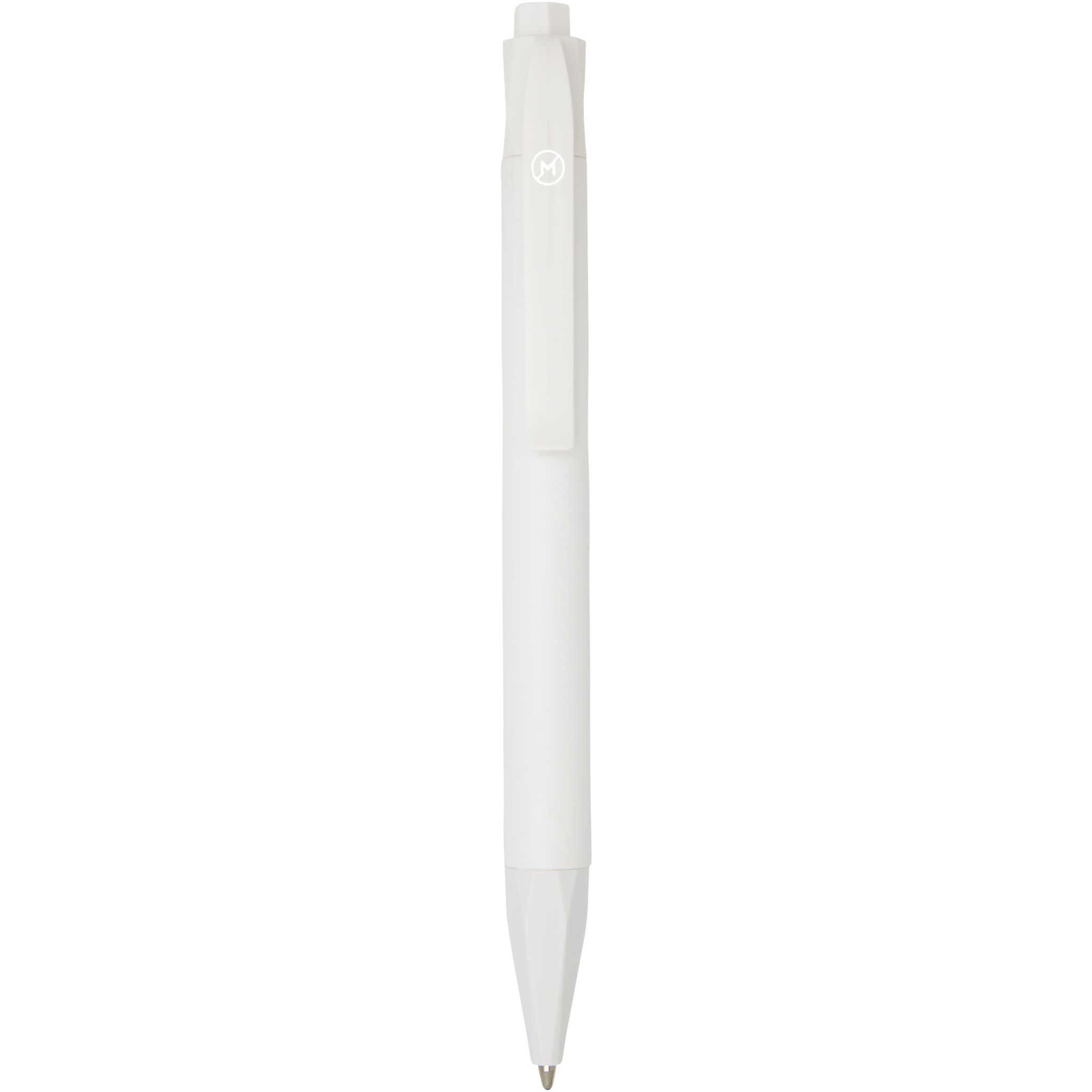 Click action longlasting and refillable ballpoint pen produced from 100% PLA (corn plastic) which reduces the amount of plastic used. Includes a refill with a writing length of approximately 2000 metres. The pen is delivered with a blue ink refill. Packed in a cardboard pen sleeve.