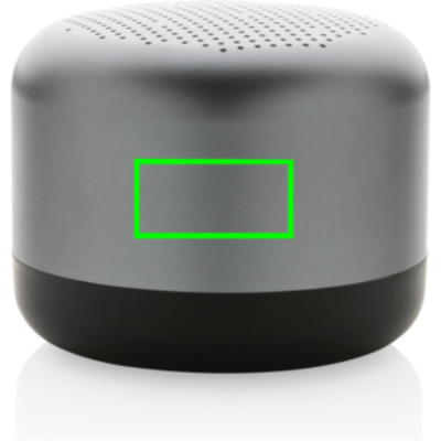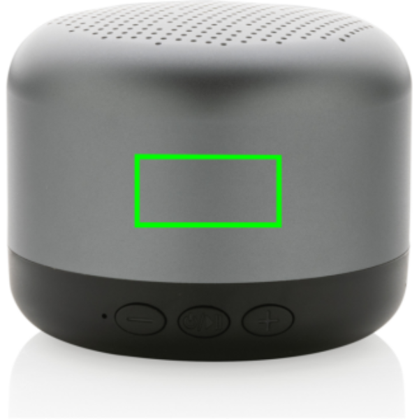 5W wireless speaker made with RCS (Recycled Claim Standard) certified recycled aluminium and ABS. Total recycled content: 35% based on total item weight. RCS certification ensures a completely certified supply chain of the recycled materials. Aluminium does not lose its characteristics in the recycling process and can be recycled endlessly. Including recycled type C charging cable made from RCS certified recycled aluminium, TPE and PET. Packed in FSC® mix packaging. The 600 mah battery allows a playtime up to 4 hours and can be fully re-charged in 2 hours. With BT 5.0 for smooth connection up to 10 metres.