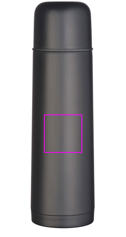 Noble! Your customers will love this fancy stainless steel thermo flask with 0.5 l capacity and fast closure. Its unique design by the black lacquering makes it the perfect logo item. We will engrave your logo on the flask. Single-packed in poly bag.