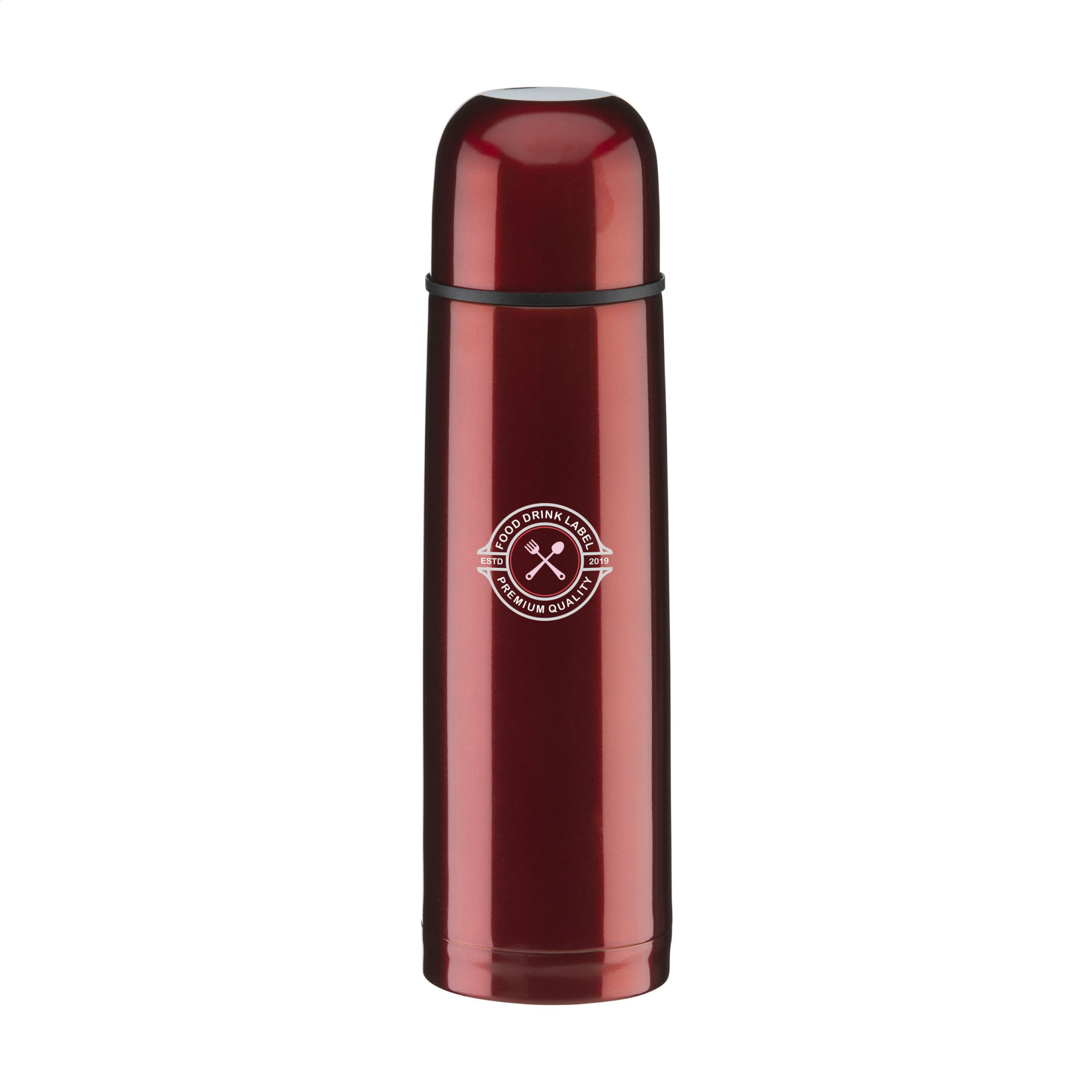 Vacuum-insulated, stainless steel thermo bottle with screw cap/drinking cup and handy press and pour system. Leak proof. Capacity 500 ml. Each item is individually boxed.