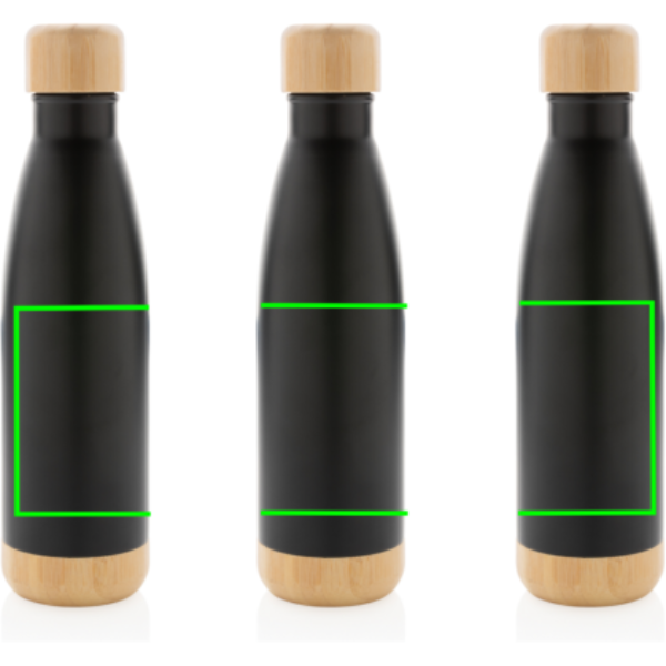 Vacuum stainless steel bottle with bamboo lid and bottom, black