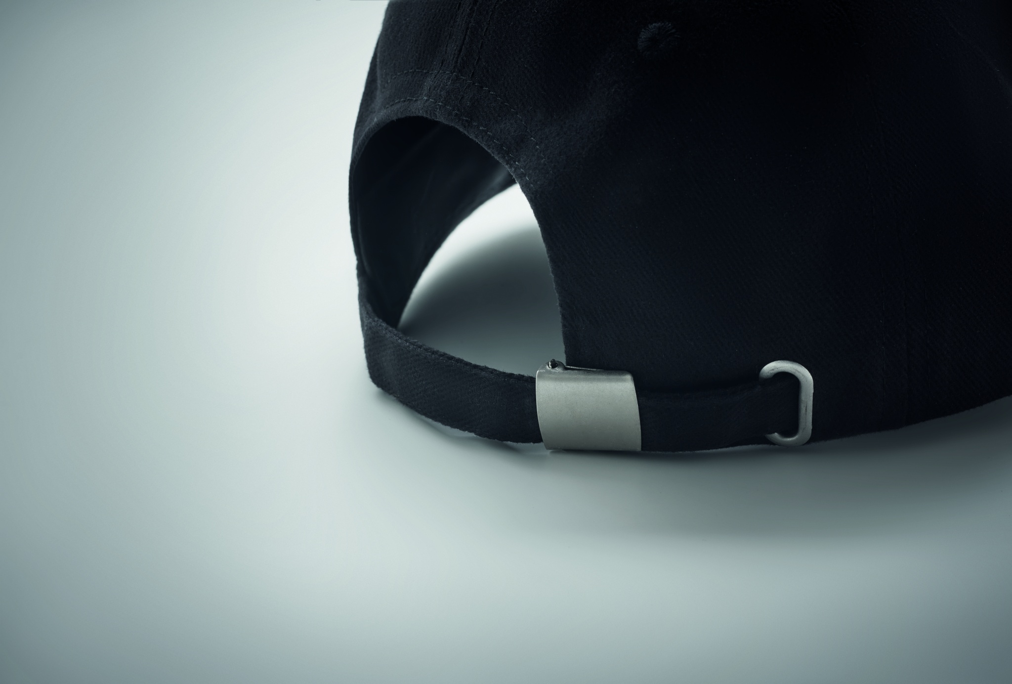 5 paneeliga tugevast harjatud toimsest puuvillasest pesapallimüts 260 g/m2 hõbedase teraspandlaga. 4 sobivas värvitoonis tikitud aasa. Suurus 7 1/4.