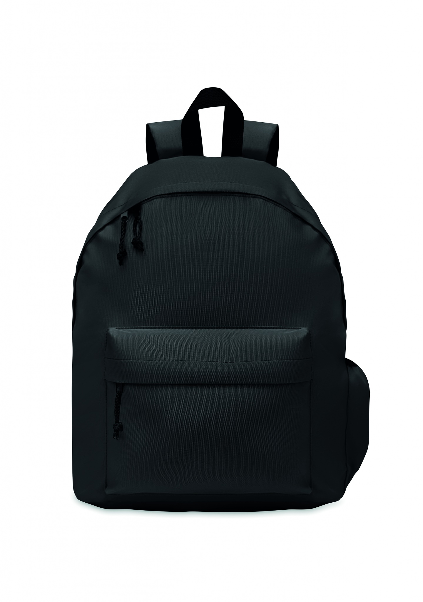 Seljakott 600D RPET polüestrist lukuga välistaskuga. Polsterdatud seljaosa ja küljes pudeli sahtel.