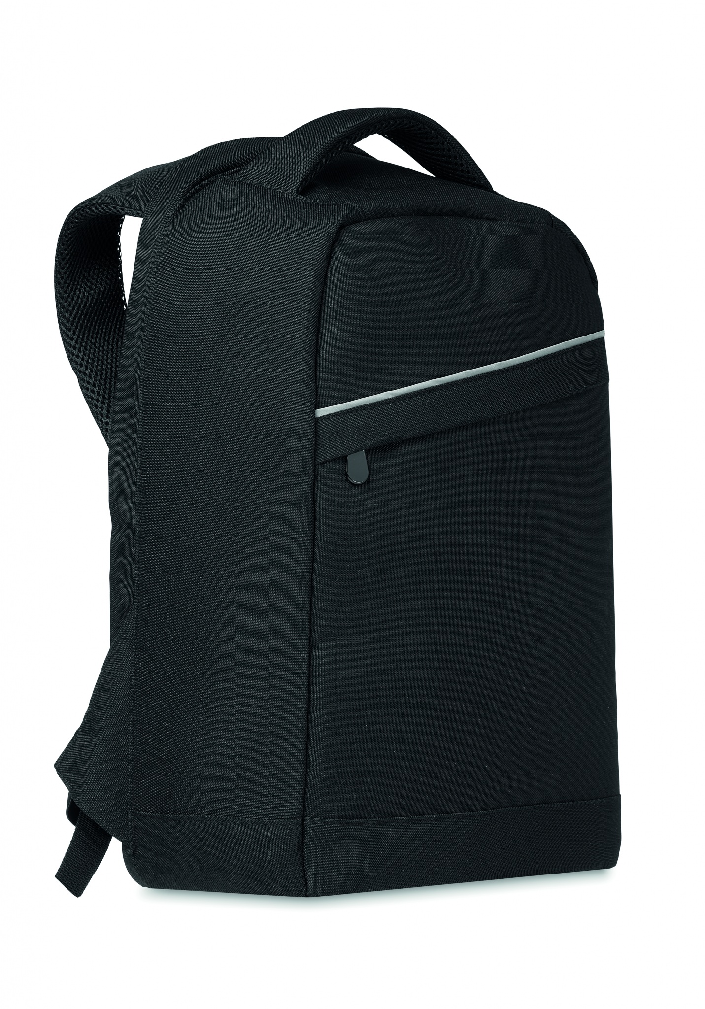 600D RPET seljakott polsterdatud õlarihmaga ja peamise sisemise sahtliga. Sellel on lukuga esitasku. Sisaldab ühte sisemist 13-tollise sülearvuti sahtlit. Tagaküljel lukuga põhisahtel parema turvalisuse tagamiseks.