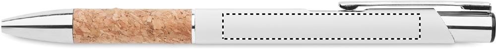 Alumiiniumist valmistatud pastapliiats, mille käepide on korgist, Valge
