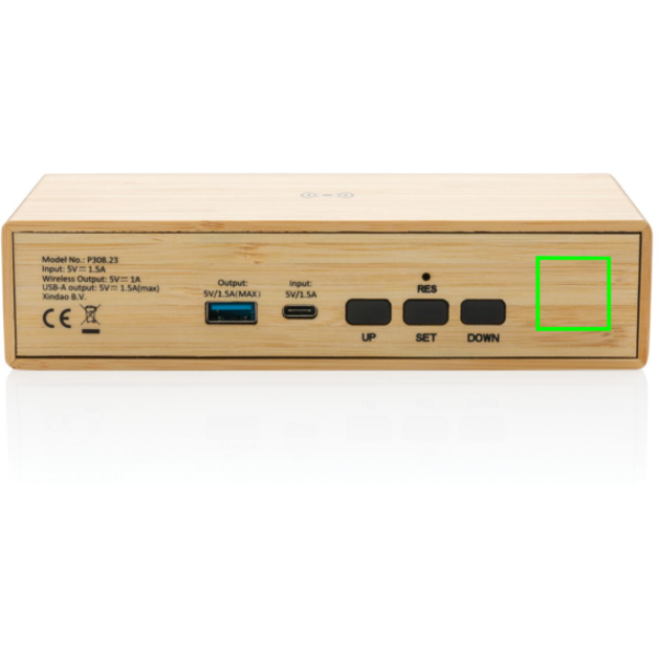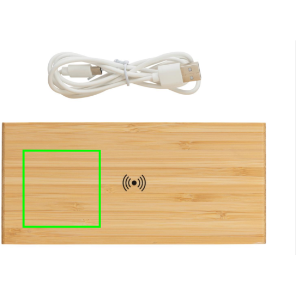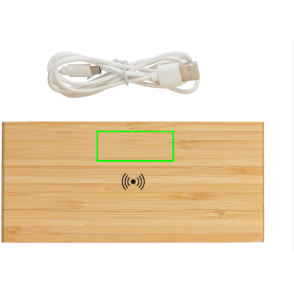 Logotrade firmakingi foto: Bambusest äratuskell 5W juhtmevaba laadijaga