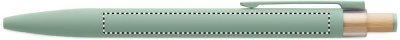 Taaskasutatud alumiiniumist pastapliiats bambusest nupuga ja metallklambriga. Sinise tindiga.