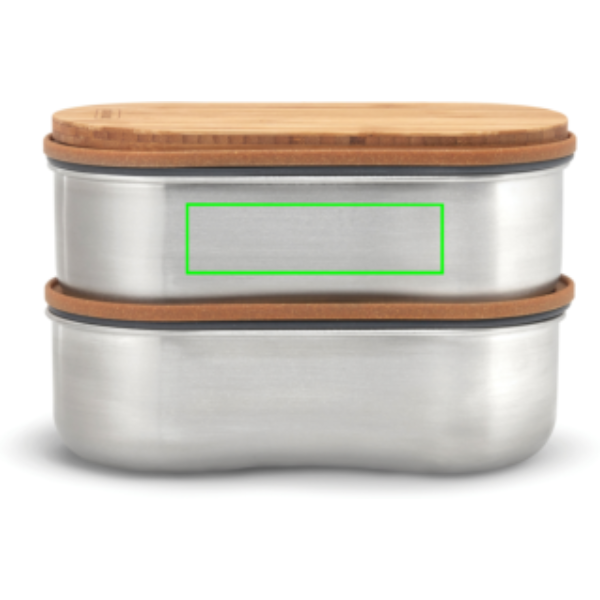 See komplekt sisaldab kahte 500 ml roostevabast terasest anumat, mille kogumaht on 1 liiter – ideaalne kaasavõetavate toitude jaoks. Anumad on 100% lekkekindlad ja varustatud nutika roostevabast terasest liuguriga toidu eraldamiseks. Bambuskaas toimib ka lõikelauana.