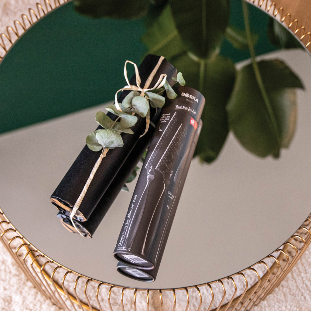 Pehmest briest kõva parmesanini pakub BOSKA – B Corporationi sertifitseeritud ettevõtte – juustunugade komplekt Monaco+ Black ideaalset lõikamislahendust igat tüüpi juustu jaoks. Need unikaalsed roostevabast terasest mittenakkuvad noad koos ehtsast nahast varrukaga on ideaalne ja stiilne kingitus tõelistele juustuhuvilistele ja kokandushuvilistele. See komplekt on külmkapis ohutu, pestav ainult käsitsi ja sellel on 10-aastane garantii.