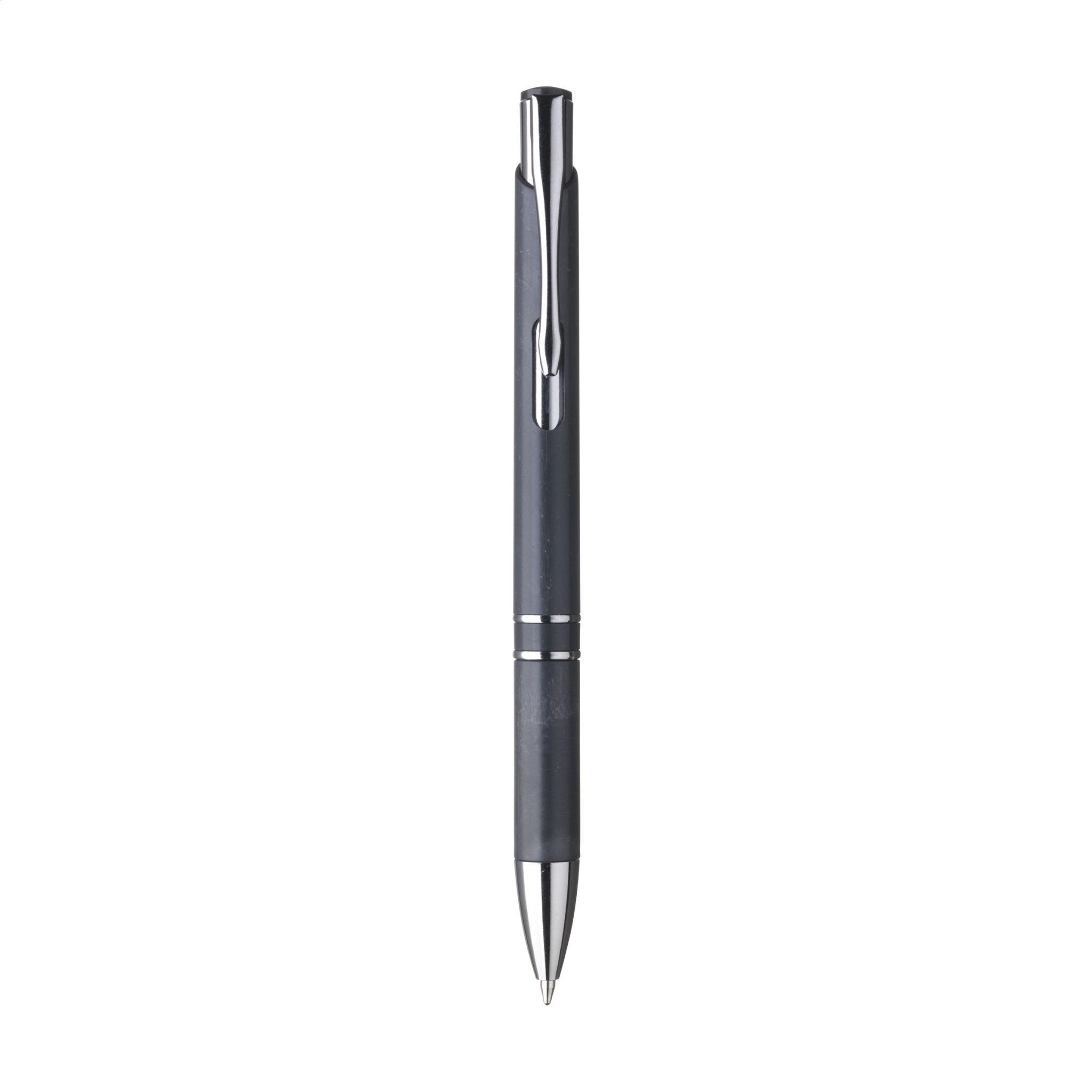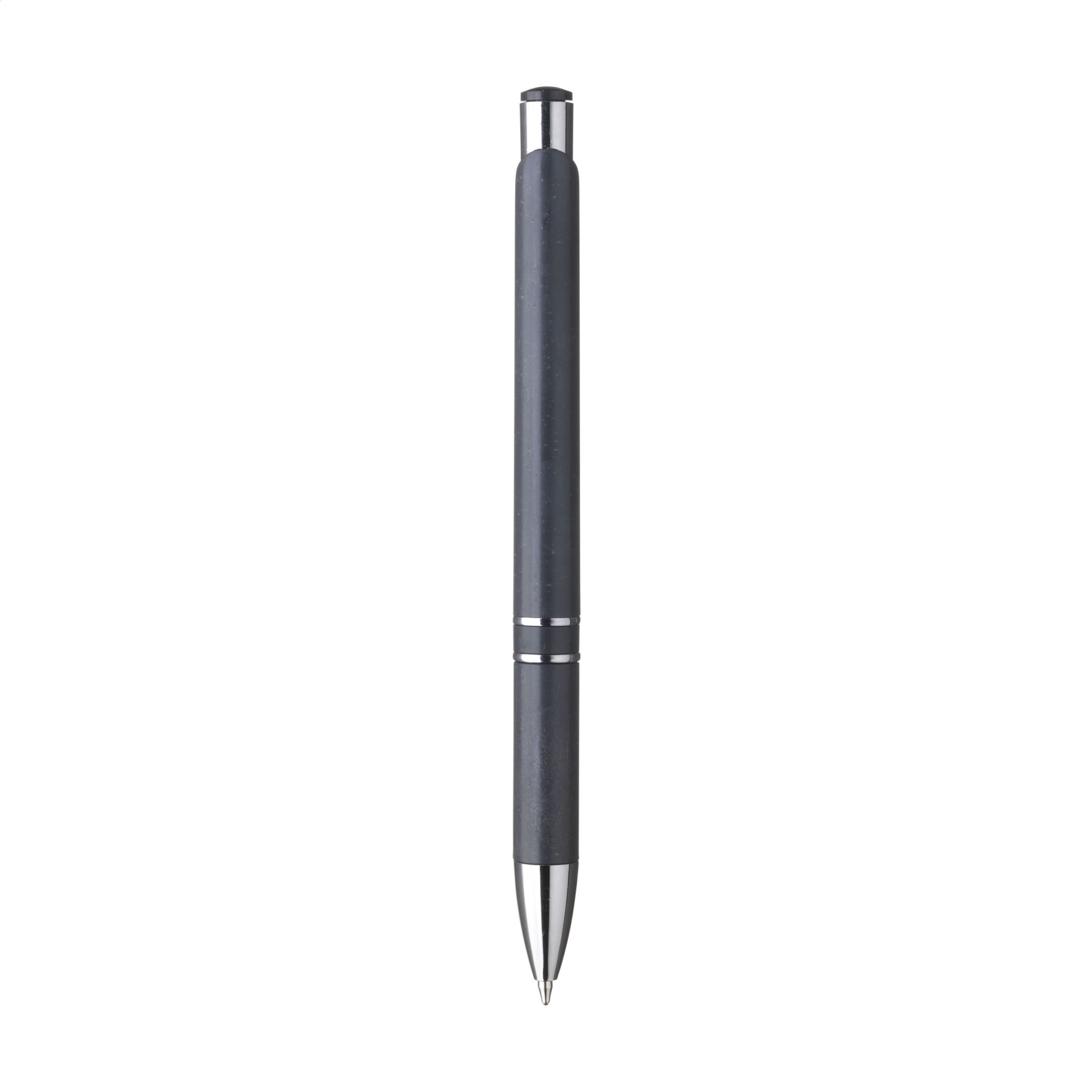 Sinise tindiga pastapliiats, mille toru on valmistatud 50% ABS-st ja 50% nisukõrtest, metallklambriga ja plastikust kroomi aktsentidega.