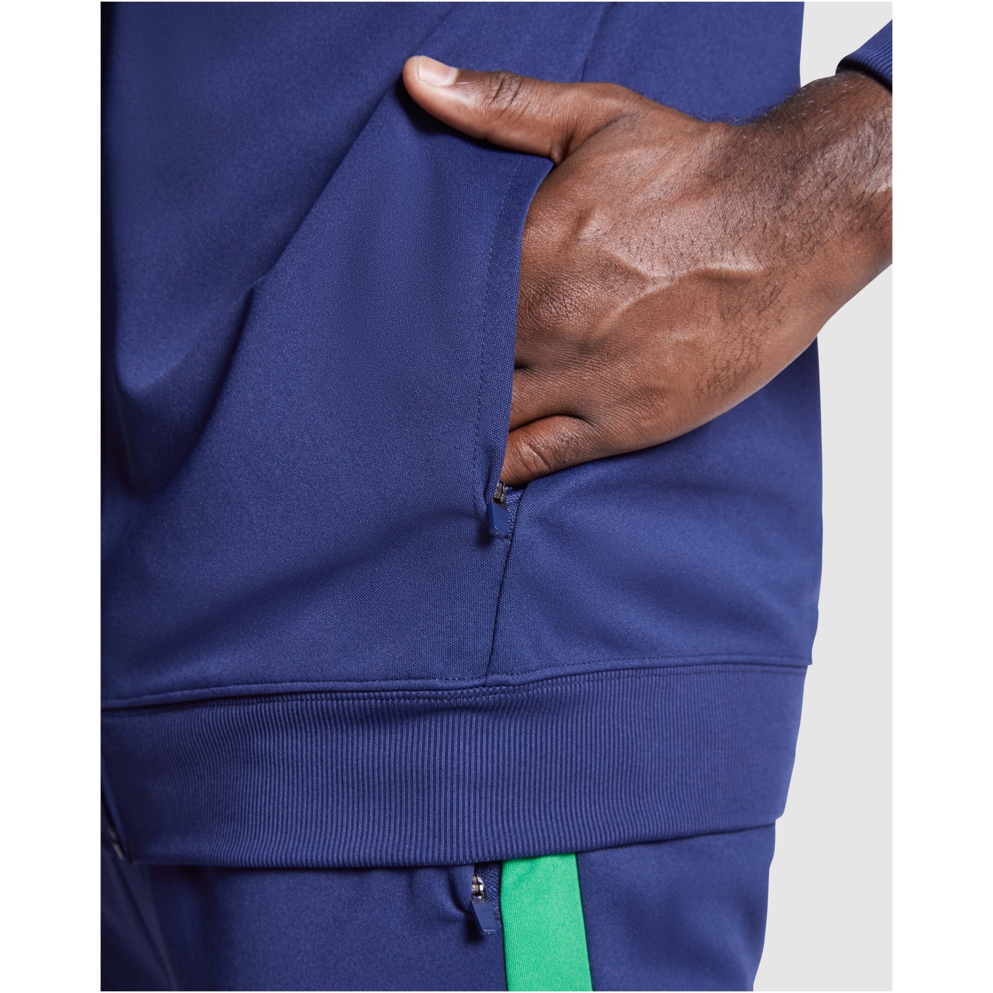 Kergest ja elastsest kangast dressid. Kontrastset värvi ja õmblemisäärtega jakk rinnal. Kõrge krae kontrastsete õmblustega. Ees keskmine tõmblukk. Küljetaskud. 2x2 soonik käised ja vöökoht. Elastse vöökoha ja pingutusnööriga püksid. Kontrastne õmblusdetailidega küljeosa. Tõmblukuga alläär.