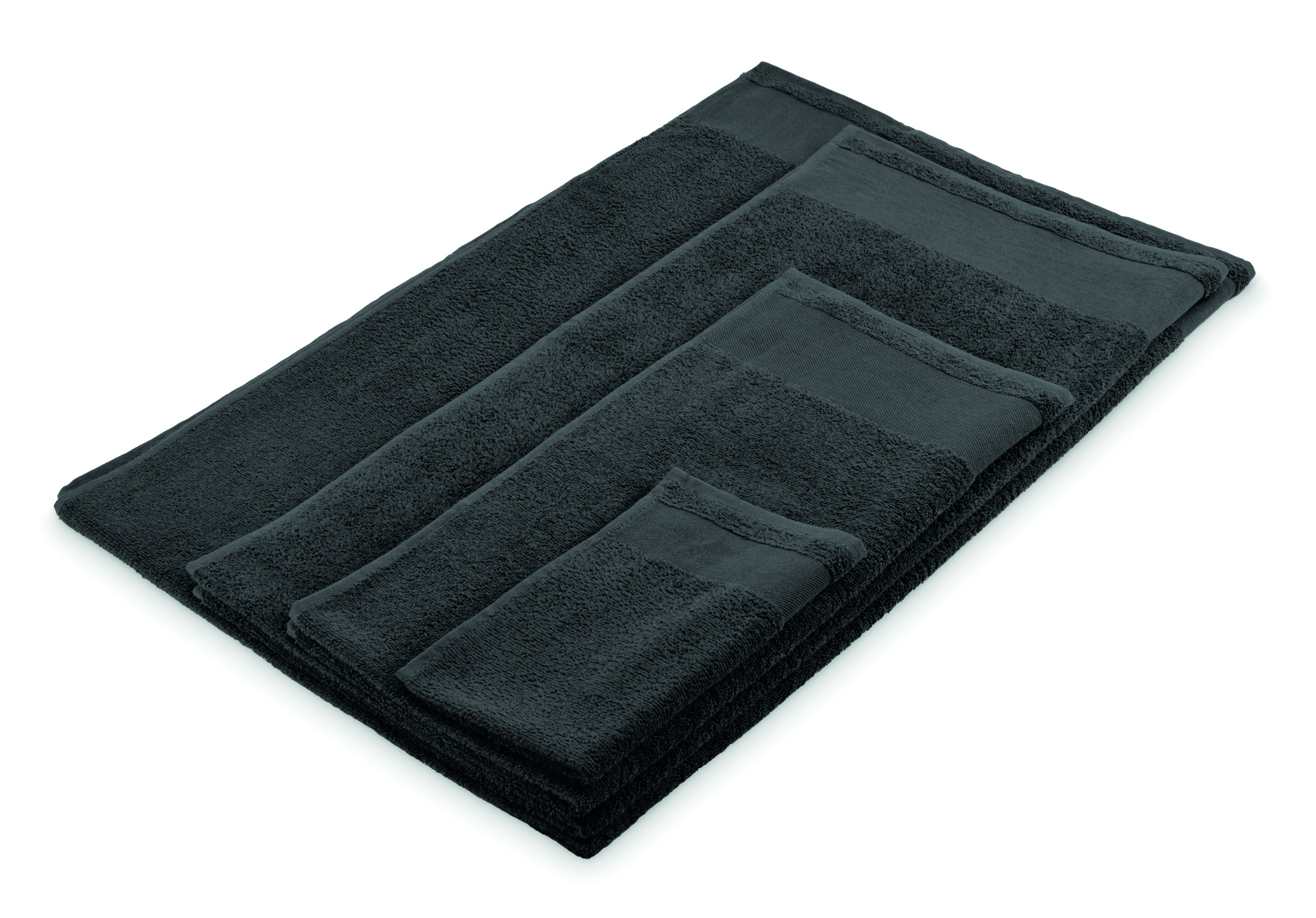 Must 100% puuvillast käterätik, 380 g/m² kangast, puuvillase riputusaasaga. Pehme ja imava disainiga. Mõõt 50 cm x 100 cm.