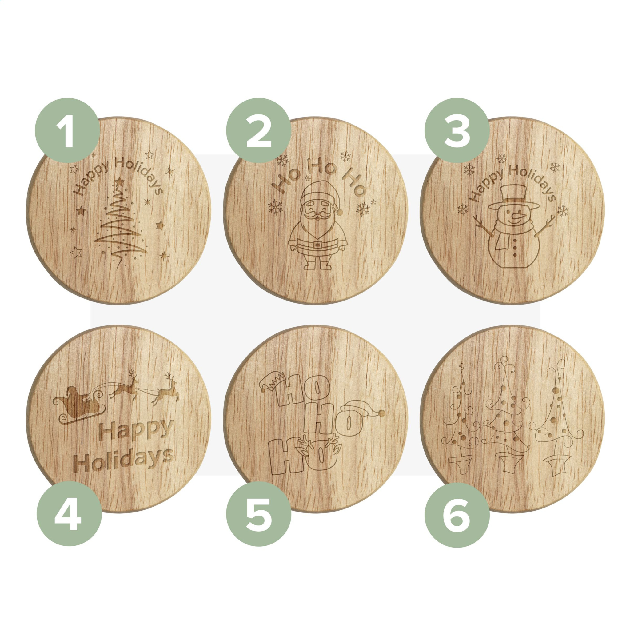 Ringikujuline pöögipuidust pudeliavaja. - See toode on trükitud tavalise jõulukujundusega. Valikus on 6 erinevat kujundust, nagu piltidel näha. Disaini pole võimalik kohandada.