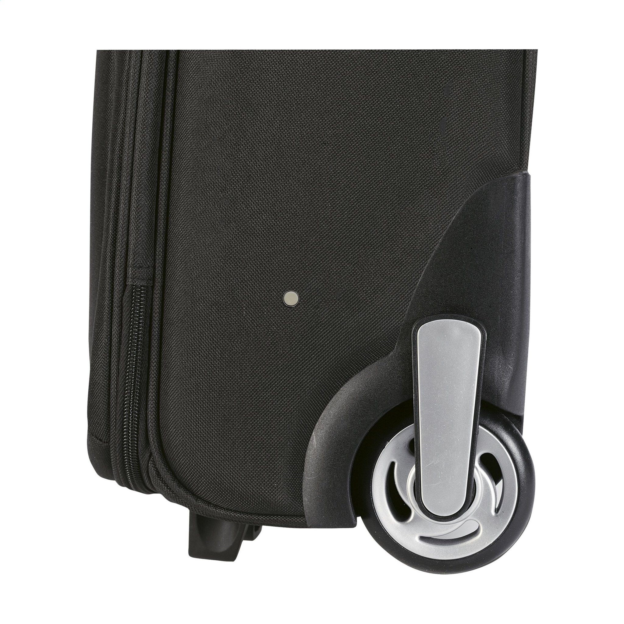 1000D polüestrist valmistatud kärukohver, millel on suur põhilahter, topelttõmblukk, mitu taskut, 2 tugevat ratast ja alumiiniumist teleskoopkäepide. Mahutavus ca. 22 liitrit. Iga tükk saatekarbis.