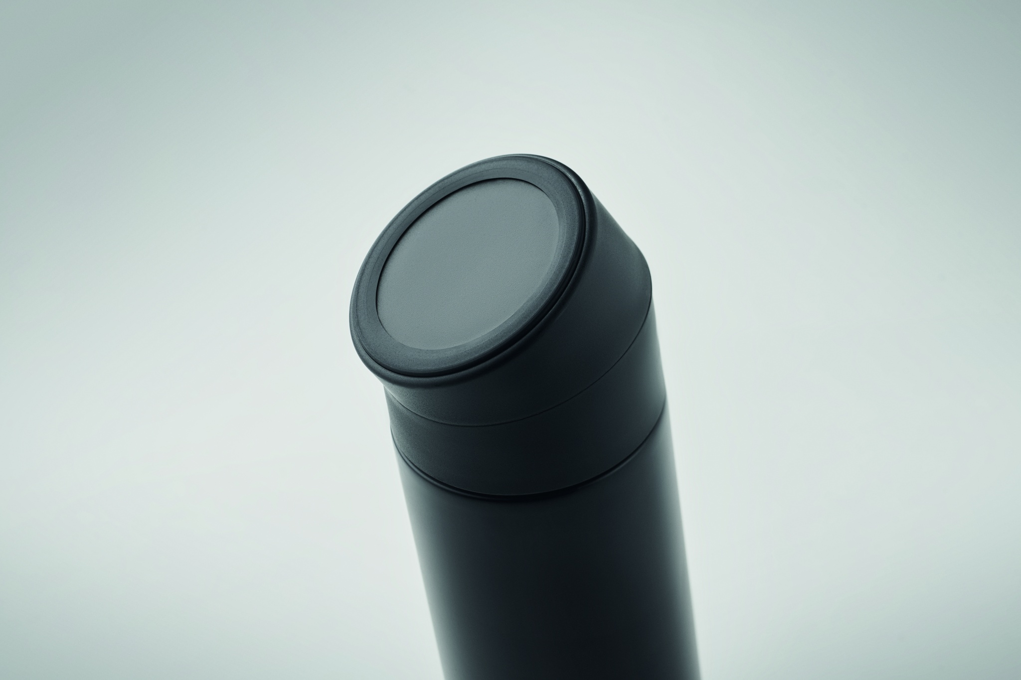 Taaskasutatud roostevabast terasest (90% taaskasutatud roostevabast terasest ja 10% roostevabast terasest) topeltseinaga vaakumisolatsioonipudel, silikoonist libisemiskindla telefonihoidiku rõnga kaanega. Lekkevaba. Mahutavus: 420 ml.