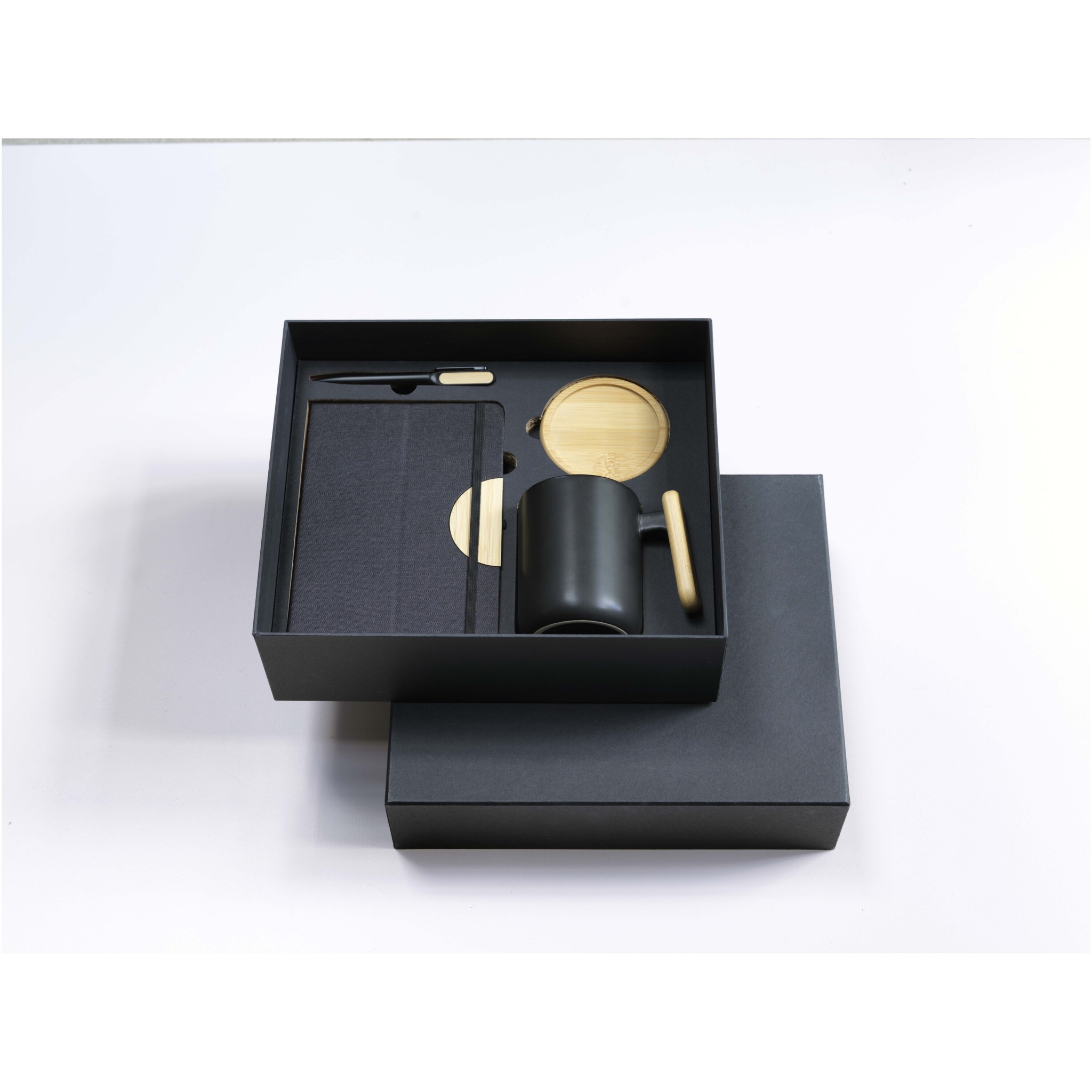 Kinkekomplekt Laura A5 märkmiku, pastaka ja kruusiga, Täiesti must