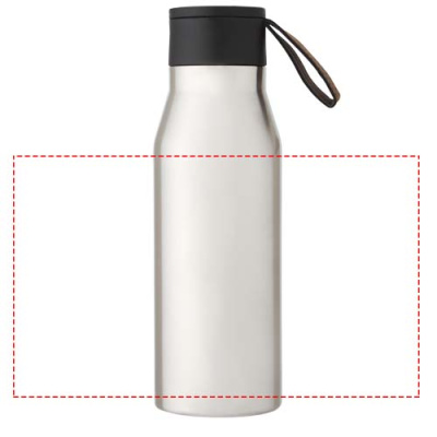 Klassikalise ja elegantse disainiga vasest vaakumisolatsiooniga roostevabast terasest pudel. Sellel on PU-nahast rihm ja detail kaanel. See muudab selle ideaalseks lasergraveerimiseks, mis tõstab logo esile hõbedaselt, luues kauni visuaalse efekti. Kahekordse seinaga vasest vaakum-isolatsiooniga 18/8 roostevabast terasest joogid püsivad kuumad või külmad mitu tundi. Testitud ja heaks kiidetud Saksamaa toiduohutuse seaduste (LFGB) alusel ning ftalaatide sisalduse suhtes testitud vastavalt REACH-määrustele. Maht on 500 ml. Esitatakse taaskasutatud papist kinkekarbis.