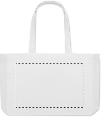 Taaskasutatud lõuendist ostukott või rannakott, 50% puuvill ja 50% taaskasutatud puuvill, pikkade sangade ja servadega. 280 gr/m².