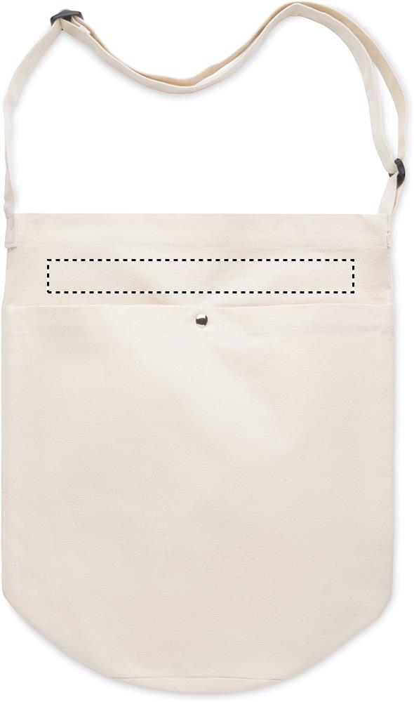 Lõuendist kott pika reguleeritava risti õlarihma ja suure krõpskinnitusega esitaskuga. Kaasas sisetasku. 270 gr/m².