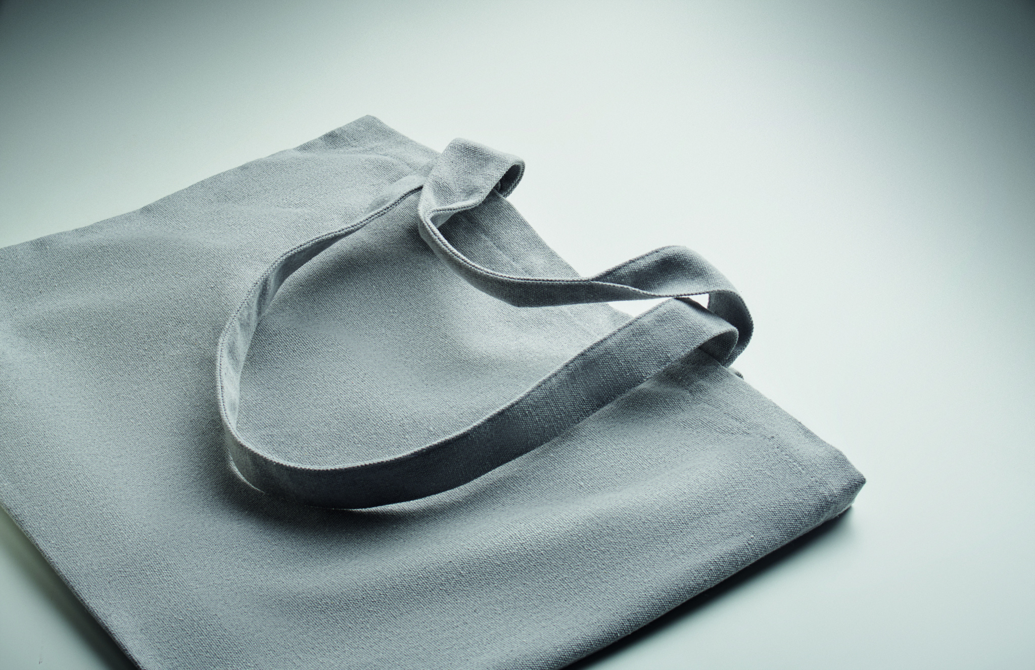 Taaskasutatud kangast (60% taaskasutatud puuvill, 40% taaskasutatud polüester) lühikeste ja pikkade sangadega ostu-/rannakott. 320 gr/m².