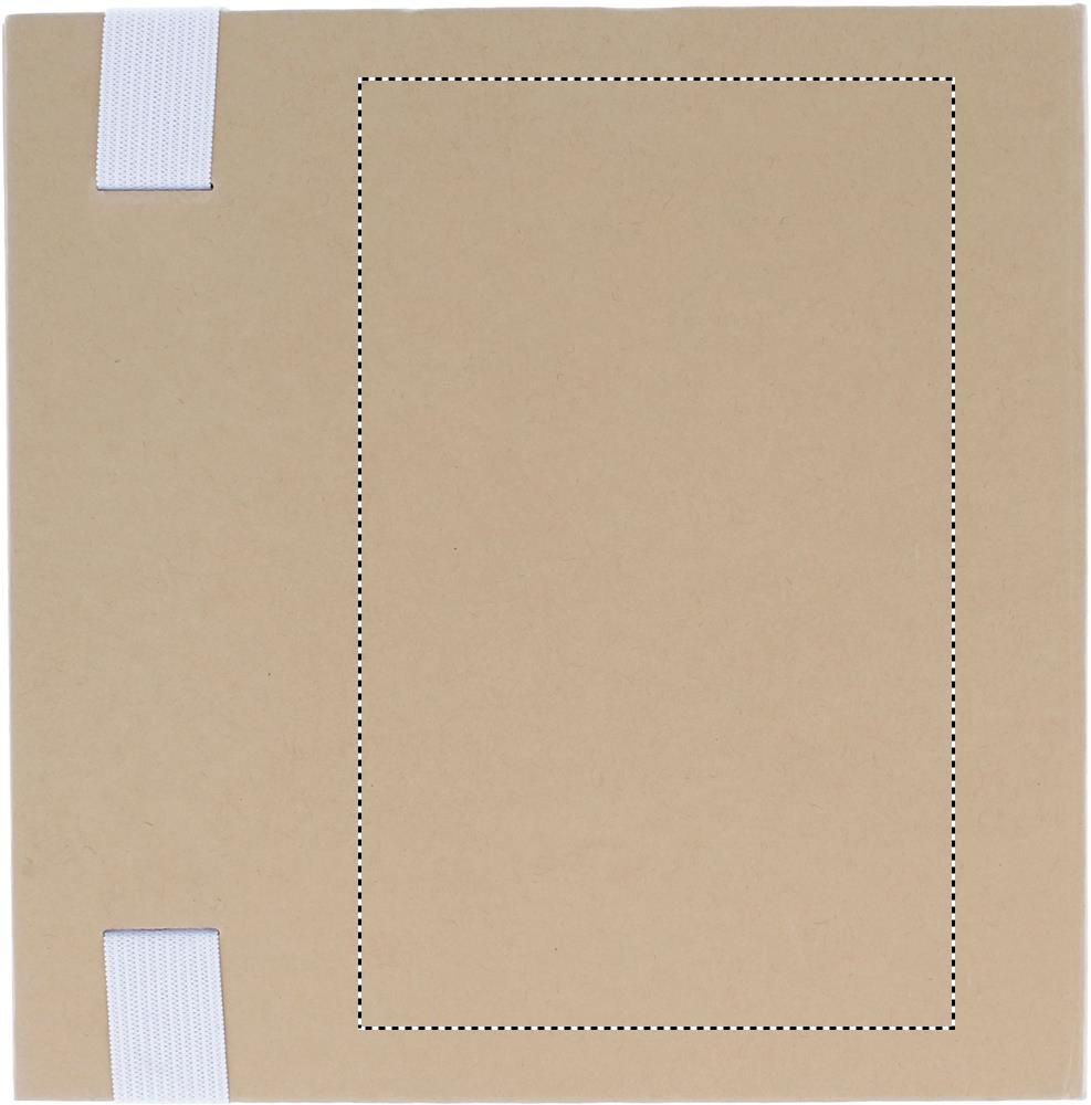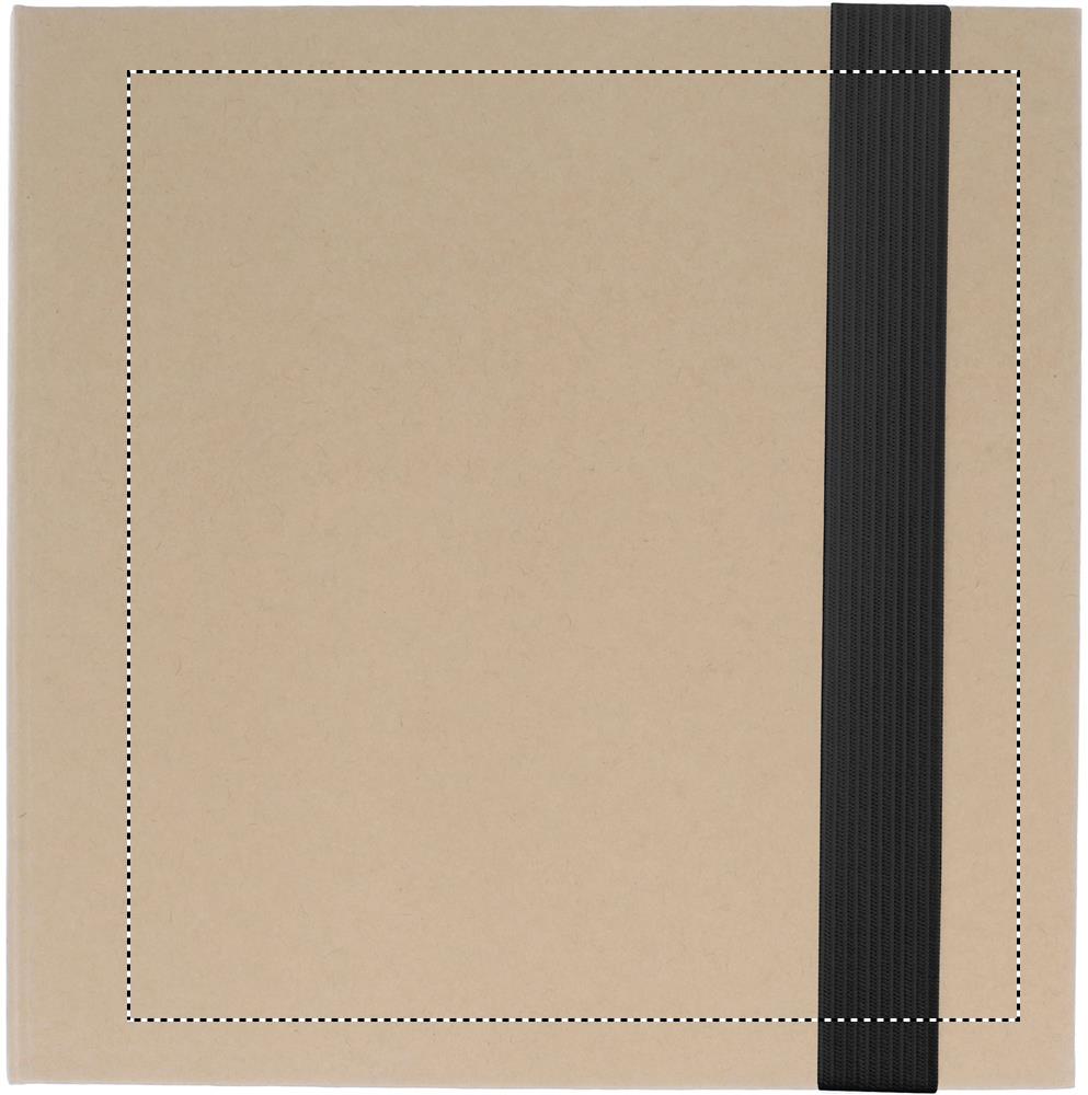 Taaskasutatud kartongist kaanega märkmik. 100 tavalise lehega märkmik. 3-osaline märkmeplokk. Suured ja keskmised kollased märkmeplokid ja 5 erinevat värvi lehemarkerit. Sobiv nööbiga pastapliiats paberist tünniga. Pliiatsihoidja. Elastne riba sulgemine.