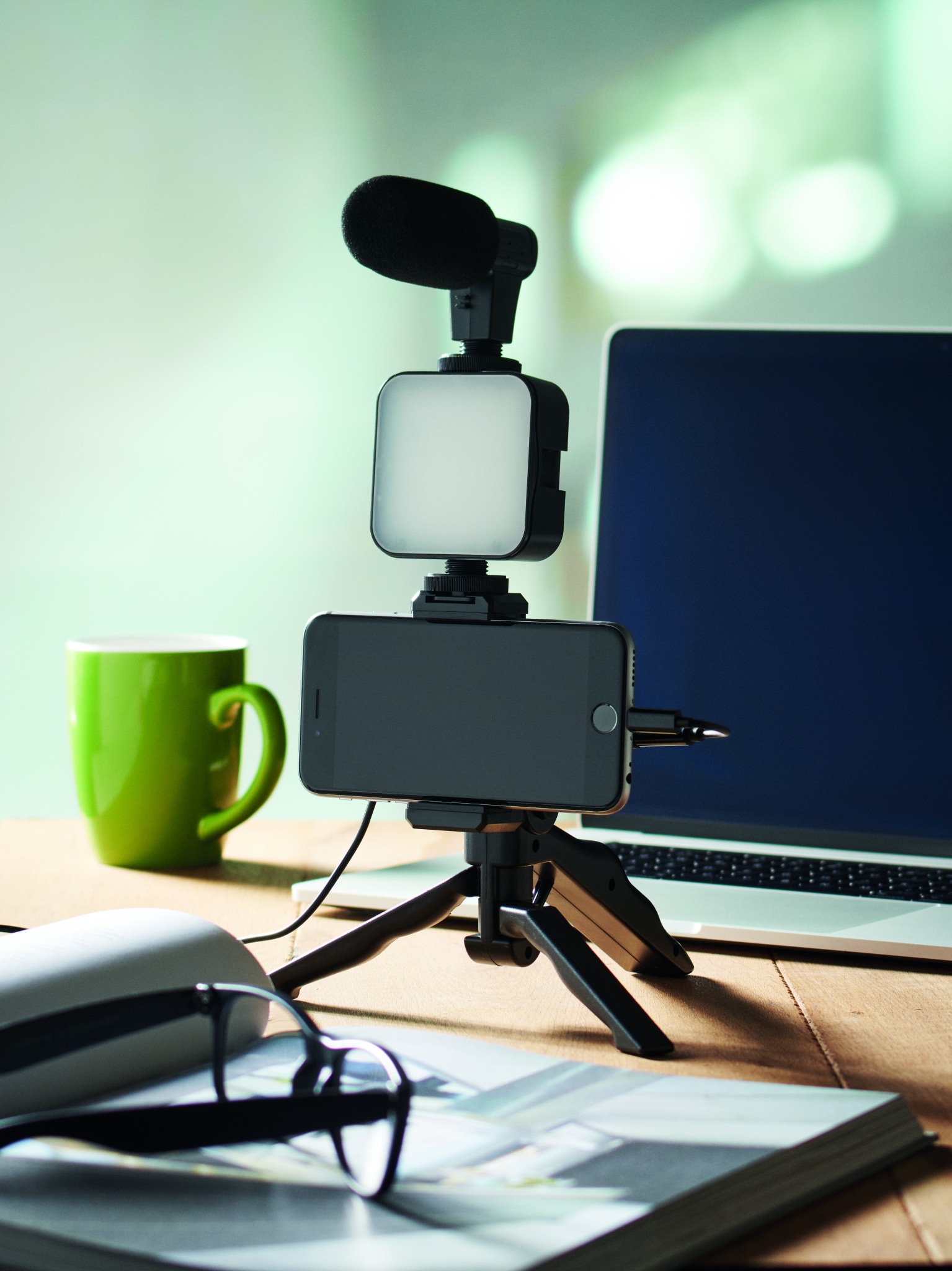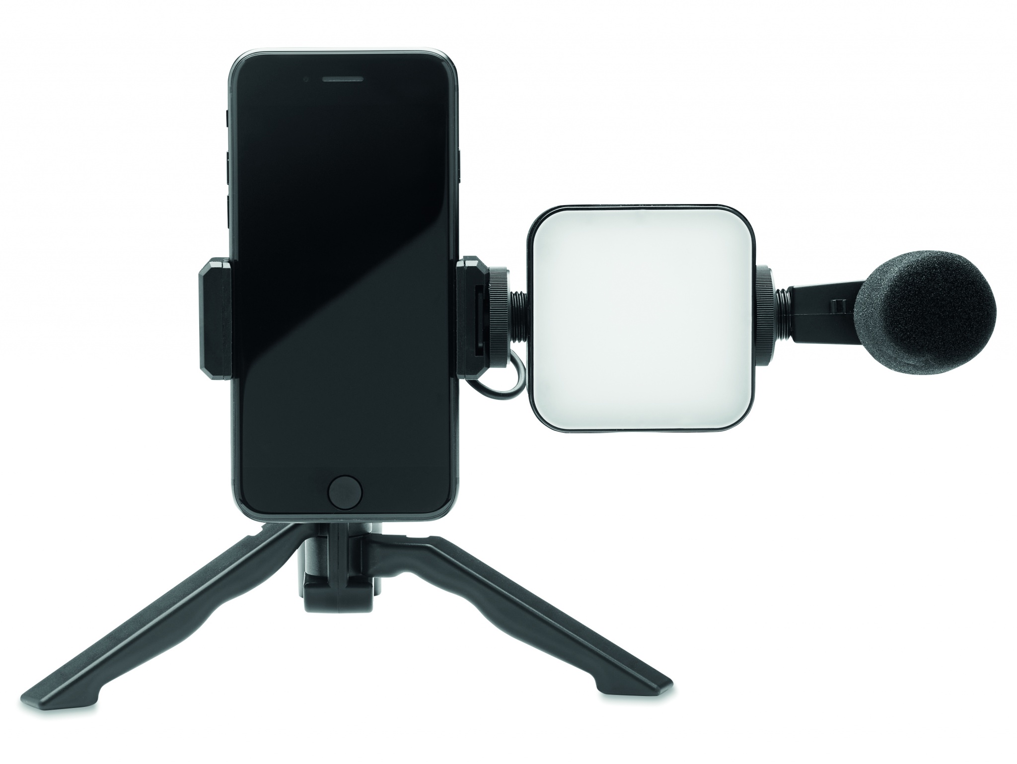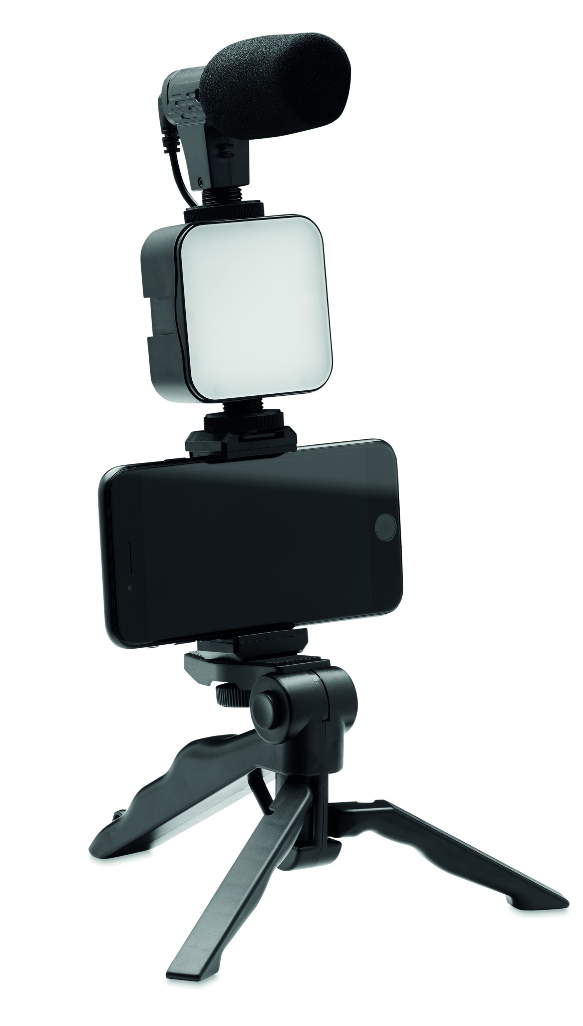 Nutitelefoni videokomplekt. Sisaldab reguleeritavat lauapealset statiiv telefonikinnitusega Haavlipüstoli mikrofoni ja helikaabli ning 3,5 mm pistikupesaga adapteriga. LED valgusti 10 valguse seadistusega. Välja arvatud 2 x AA tüüpi patareid.