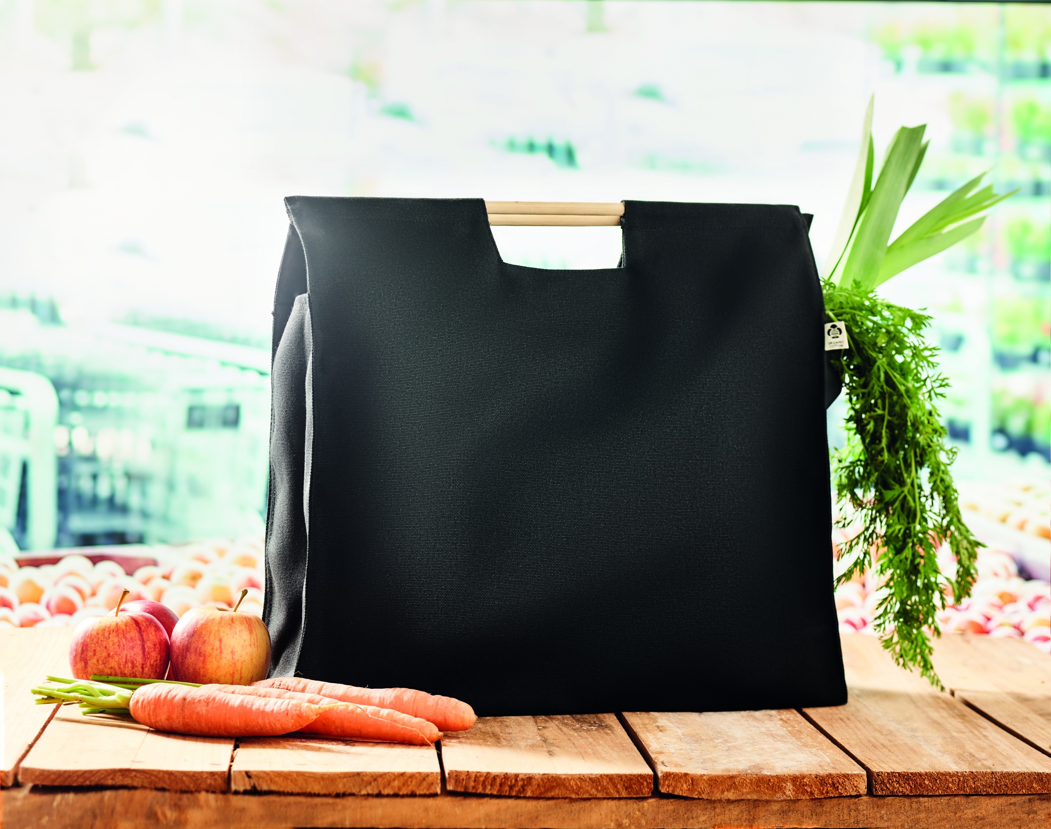 Orgaanilisest lõuendist poekott bambusest sangadega. 360 gr/m².