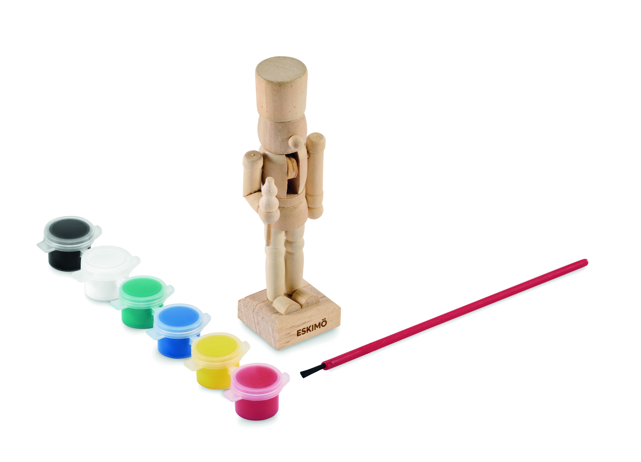 Puidust maalikomplekt pähklipureja tegelaskujuga, 6 veepõhise pigmendi ja 1 pintsliga.