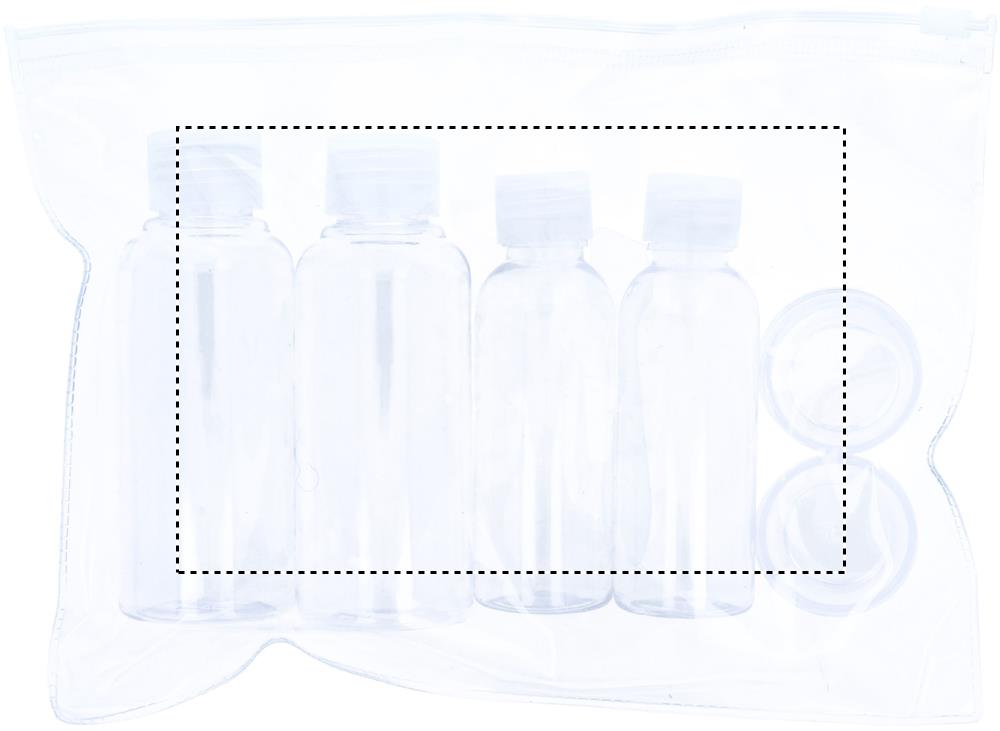 Lennuki reisikott, mis sisaldab 6 tühja plastpudelit. (100 ml, 50 ml ja 10 ml)