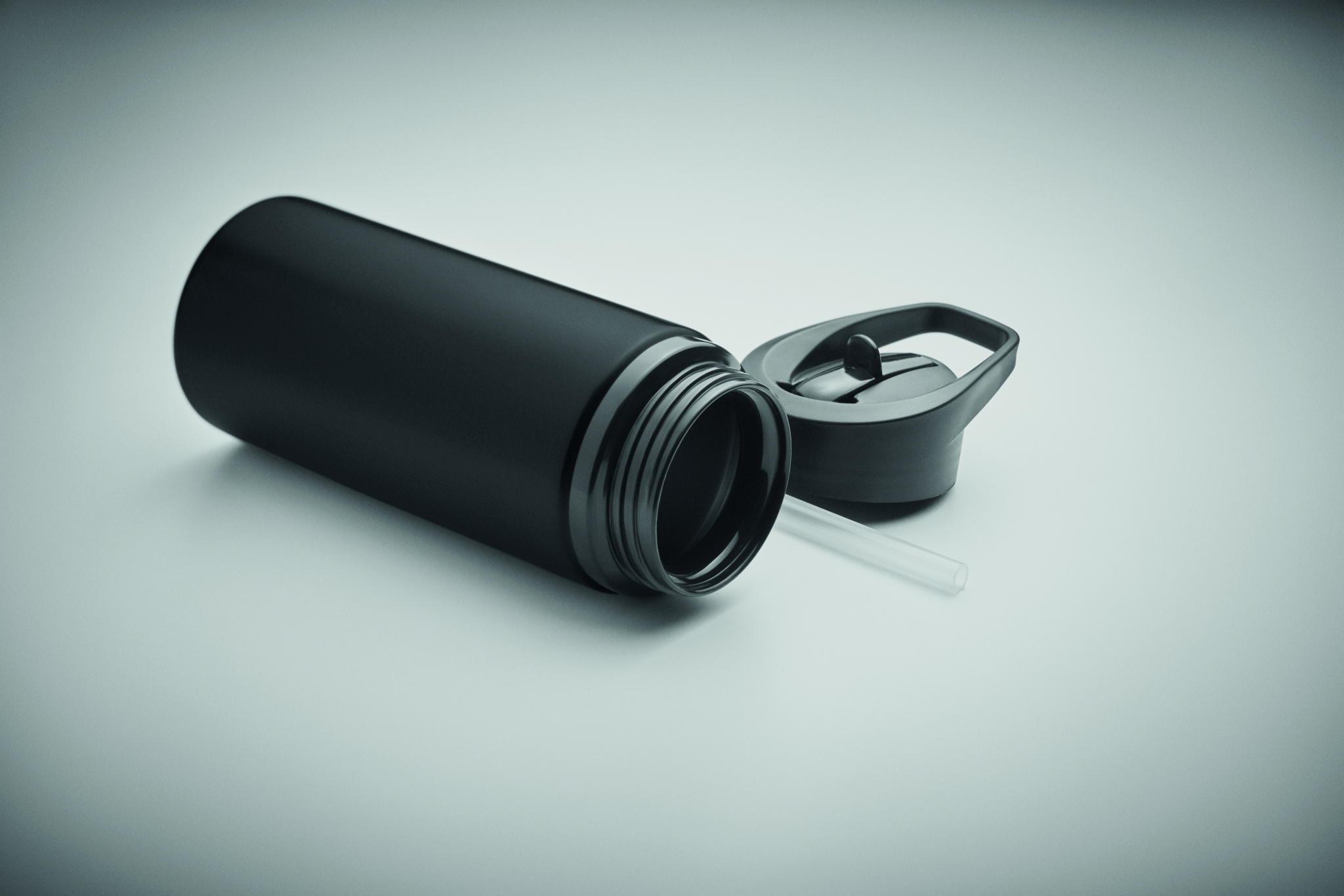 Must joogipudel, 90% taaskasutatud roostevabast terasest ja 10% roostevabast terasest, ühe seinaga pudel kokkupandava huuliku, õlgede ja kandesangaga kaanega. Mahutavus: 500 ml.