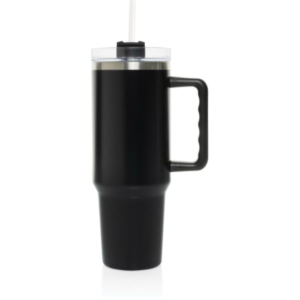 Stadley 1200 ml sangaga termoskruus. See sobib enamikesse topsihoidjatesse. Väljastpoolt valmistatud vastupidavast taaskasutatud roostevabast terasest Stadley kaheseinaline vaakumisolatsiooniga korpus hoiab joogid ideaalsel temperatuuril. Sellel on topeltfunktsiooniga pritsmekindel kaas, mis võimaldab kaasasoleva silikoonotsaga taaskasutatud terasest kõrrest juua. RCS-sertifikaadiga, 29% taaskasutatud sisaldusega ja BPA-vaba. Soovitame pesta käsitsi. Hulgipakendatud.