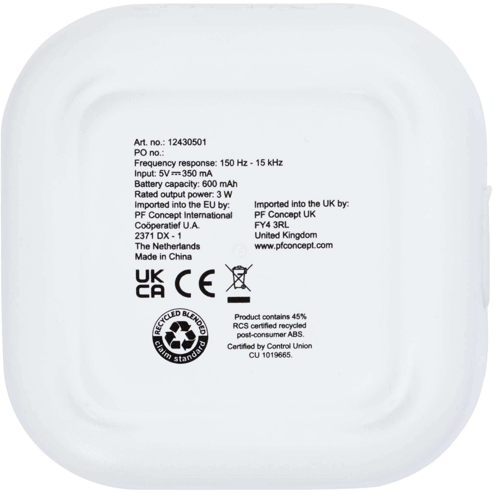Stark 2.0 3W mini RCS taaskasutatud plastikust Bluetooth® kõlar, Valge