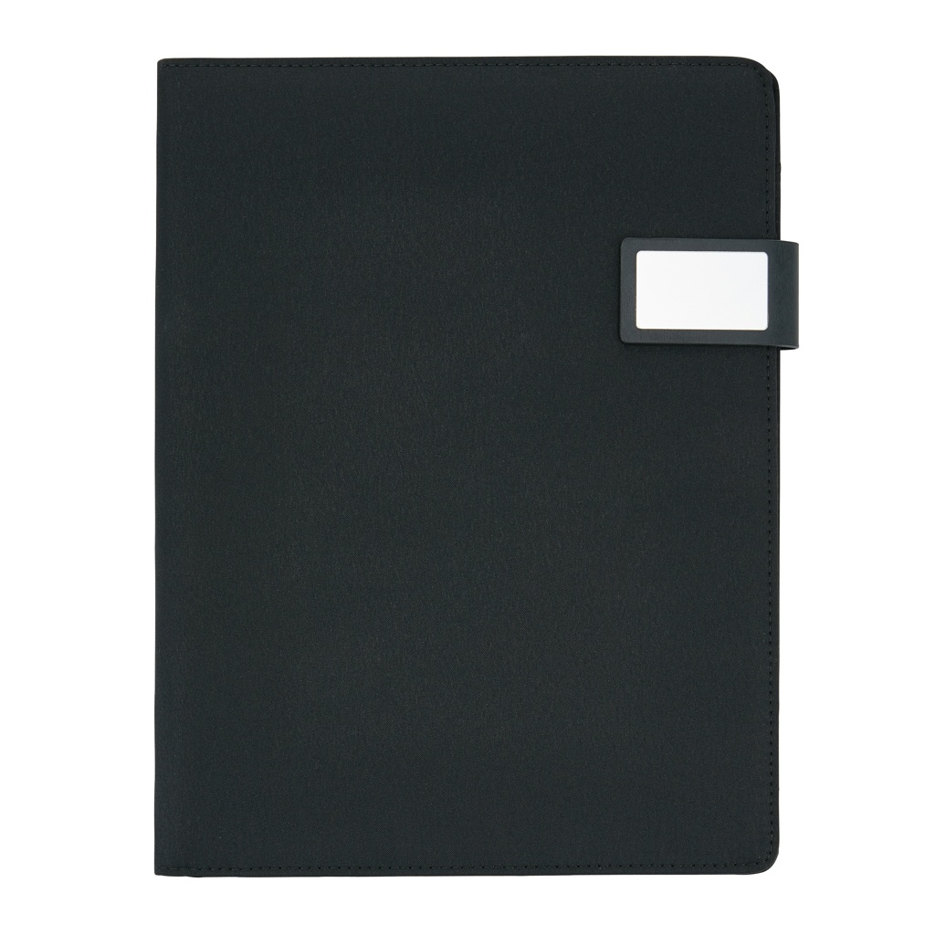 A4 tehniline portfell luksusliku magnetilise metallsulguriga. Sees: tahvelarvuti/telefoni alus, telefonihoidik läbipaistva aknaga, mis võimaldab teil oma seadet vaadata ja sellele juurde pääseda. Sobib enamlevinud telefonidele. Varrukaga dokumentide jaoks, 2 kaardihoidjat ja pliiatsi aasa. Kaasa arvatud taaskasutatud A4 märkmik.