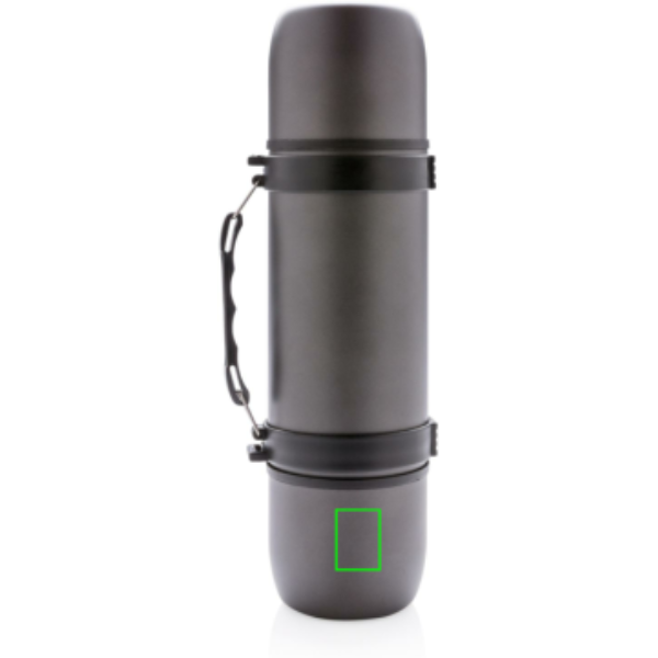 Elegantse disainiga roostevabast terasest kaheseinaline vaakumkolb käepideme ja õlarihmaga ning sisaldab kahte sobivat tassi optimaalse joogikogemuse tagamiseks. Lekkekindel ja ainult käsipesu. Sisu 700ml.