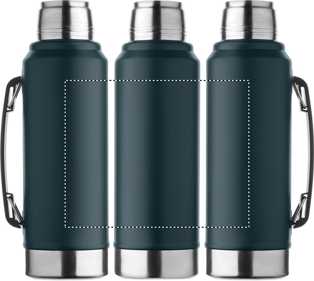 Topeltseinaga vaakumpudel taaskasutatud roostevabast terasest (90% taaskasutatud roostevabast terasest ja 10% roostevabast terasest), käepidemega. PP-kaane ja taaskasutatud roostevabast terasest topsiga. Lekkevaba. Mahutavus: 1 l.