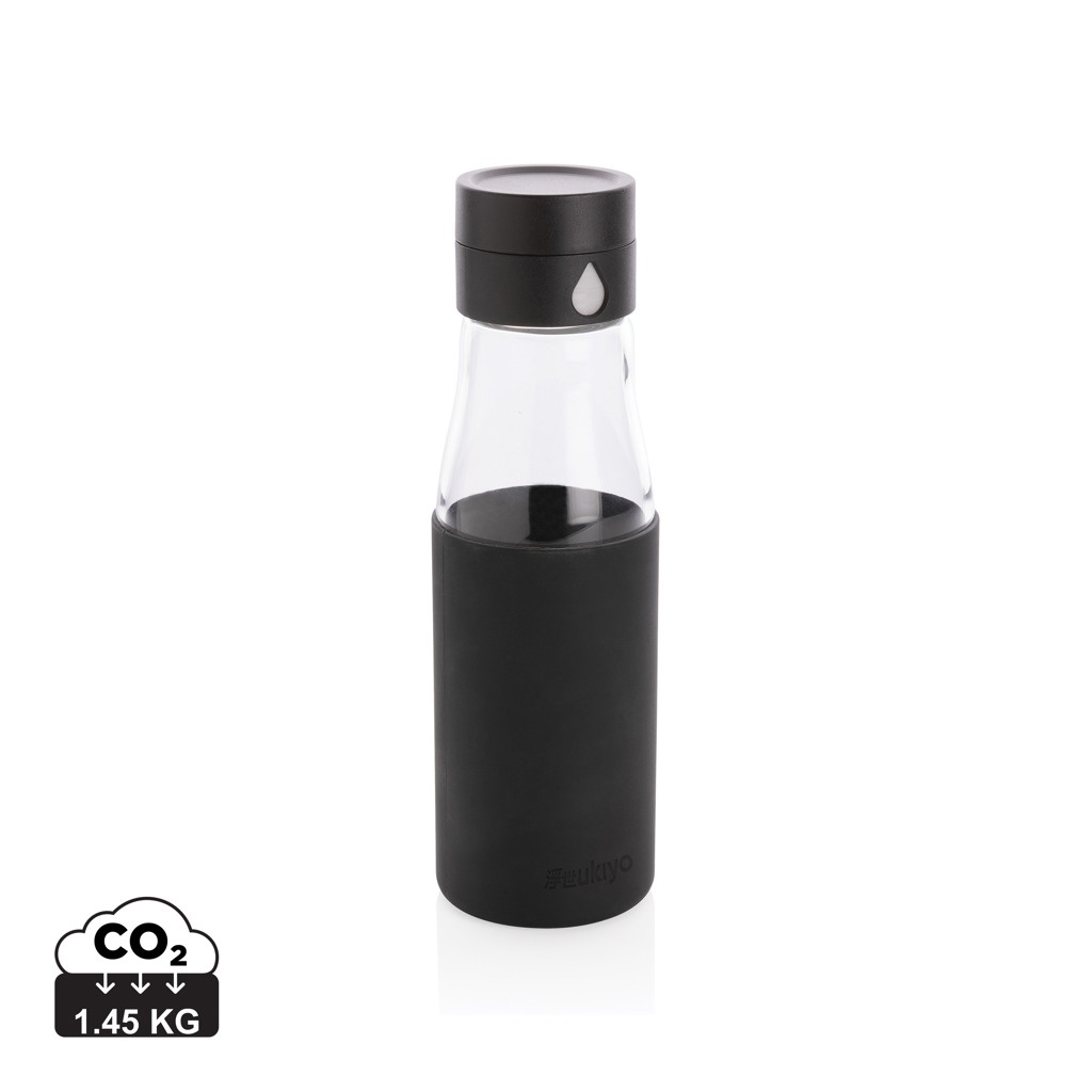 Ukiyo klaasist hüdratatsiooni jälgiv varrukaga pudel, must