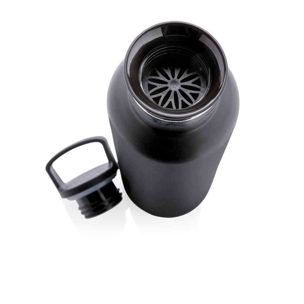 Pulbervärvitud topeltseinaga vaakumisolatsiooniga pudel. Kaks-ühes kaas filtriga, sobib suurepäraselt kuuma tee või infusioonivee jaoks. Standardne suuava, mis sobib ideaalselt rüübamiseks ja jääkuubikute lisamiseks. Ehitatud kestma, suurepärane pudel igaks hooajaks. 304 SS sisemine ja 201 SS välimine hoiab teie joogid kuumana kuni 5 tundi ja külmana kuni 15 tundi. Maht: 600 ml.