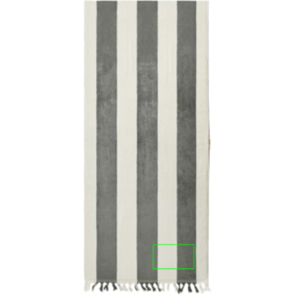 Luksuslik puuvillane rannarätik, mille ühes lühikeses otsas on tutid ja teises lamamistoolitasku. Libistage tasku üle lamamistooli, et rätik paigal püsiks. Meie rannarätikud on valmistatud Indias puuvillast ja nende paksus on 450 g/m2. OEKO-TEX® STANDARD 100. 09.HIN.68091. Hohenstein HTTI.