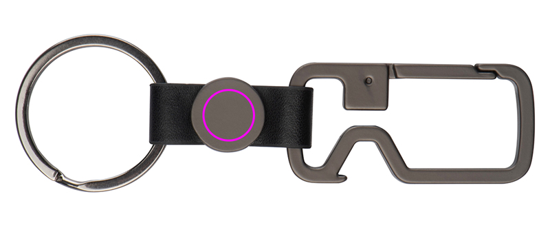 Grafiidivärvi võtmehoidja karabiiniga, võtmehoidja ja pudeliavaja. Ümarale tükile graveeritakse teie logo.