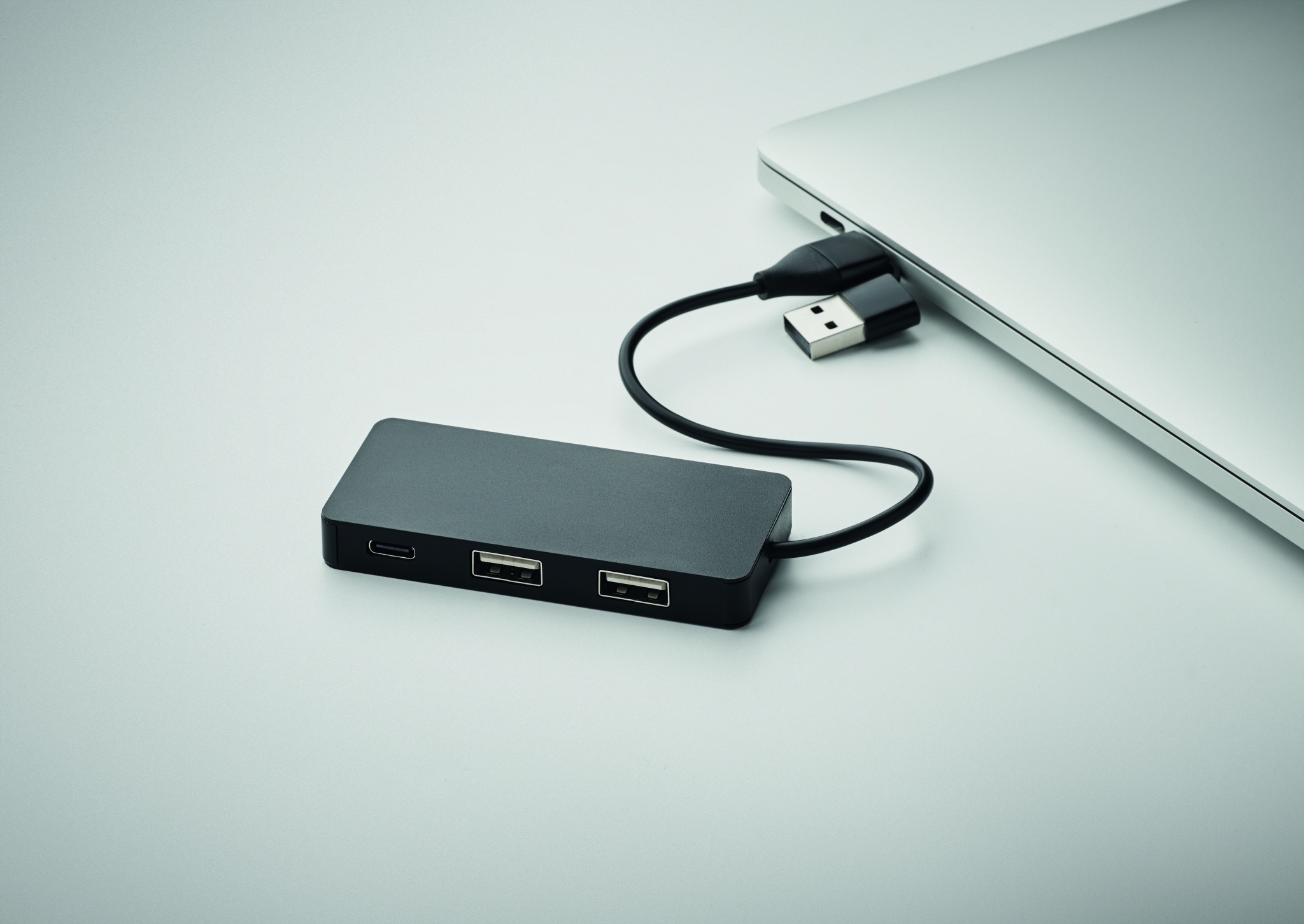 3 portin USB-keskitin kierrätettyä alumiinia. Lähtö: 2 x Type-A ja 1 x Type-C. Tulo: 2-in-1 Type-C and Type-A. Kaapelin pituus: 20 cm.