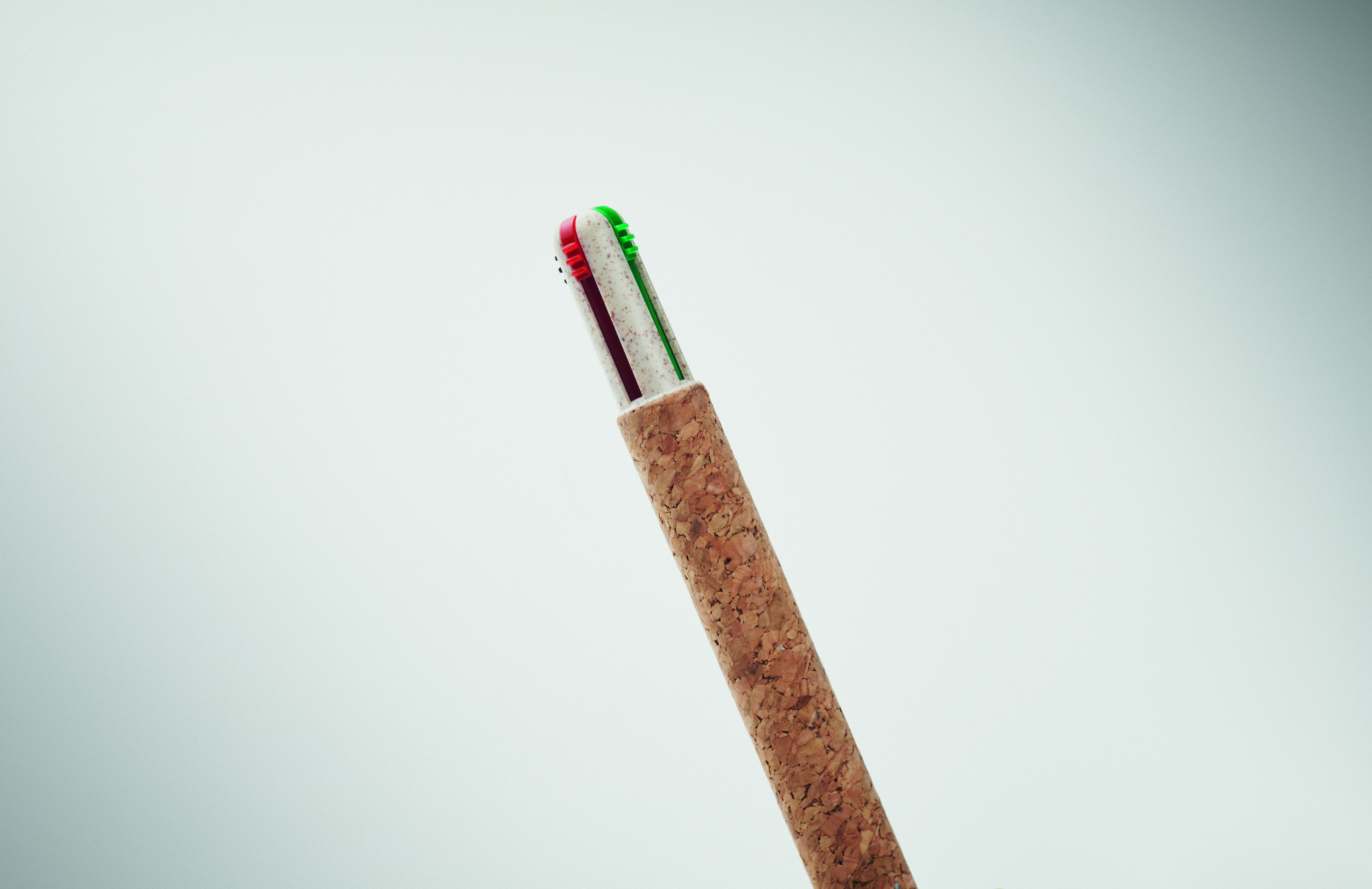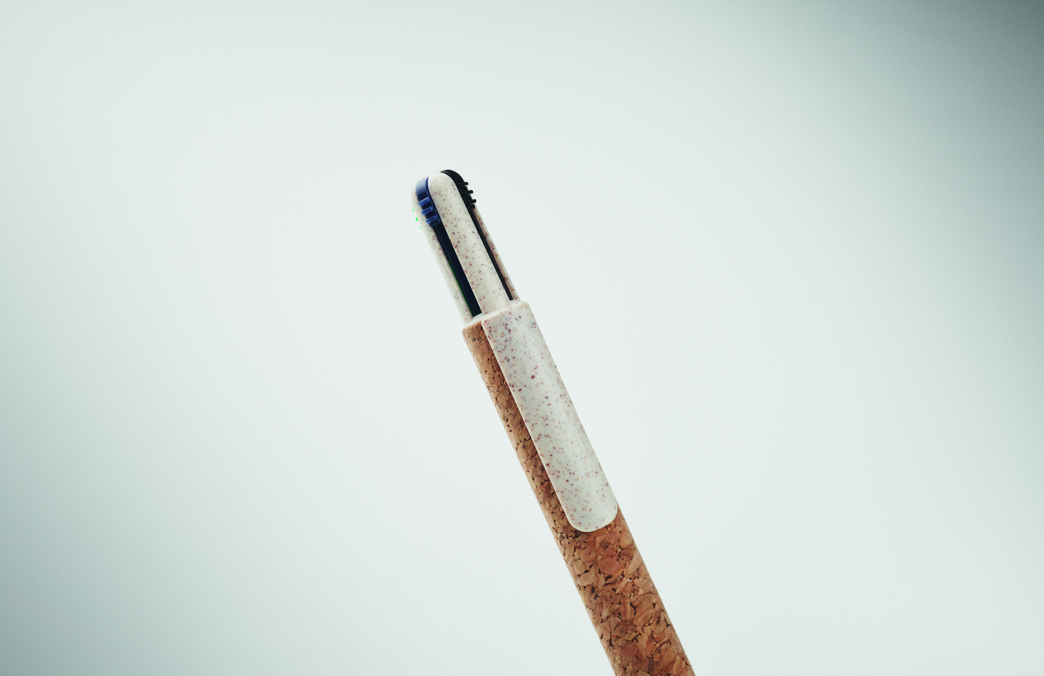 Painike 4-värinen mustekuulakynä, jossa korkkipiippu ja vehnän olki (50%) ja ABS-muovi (50%).
