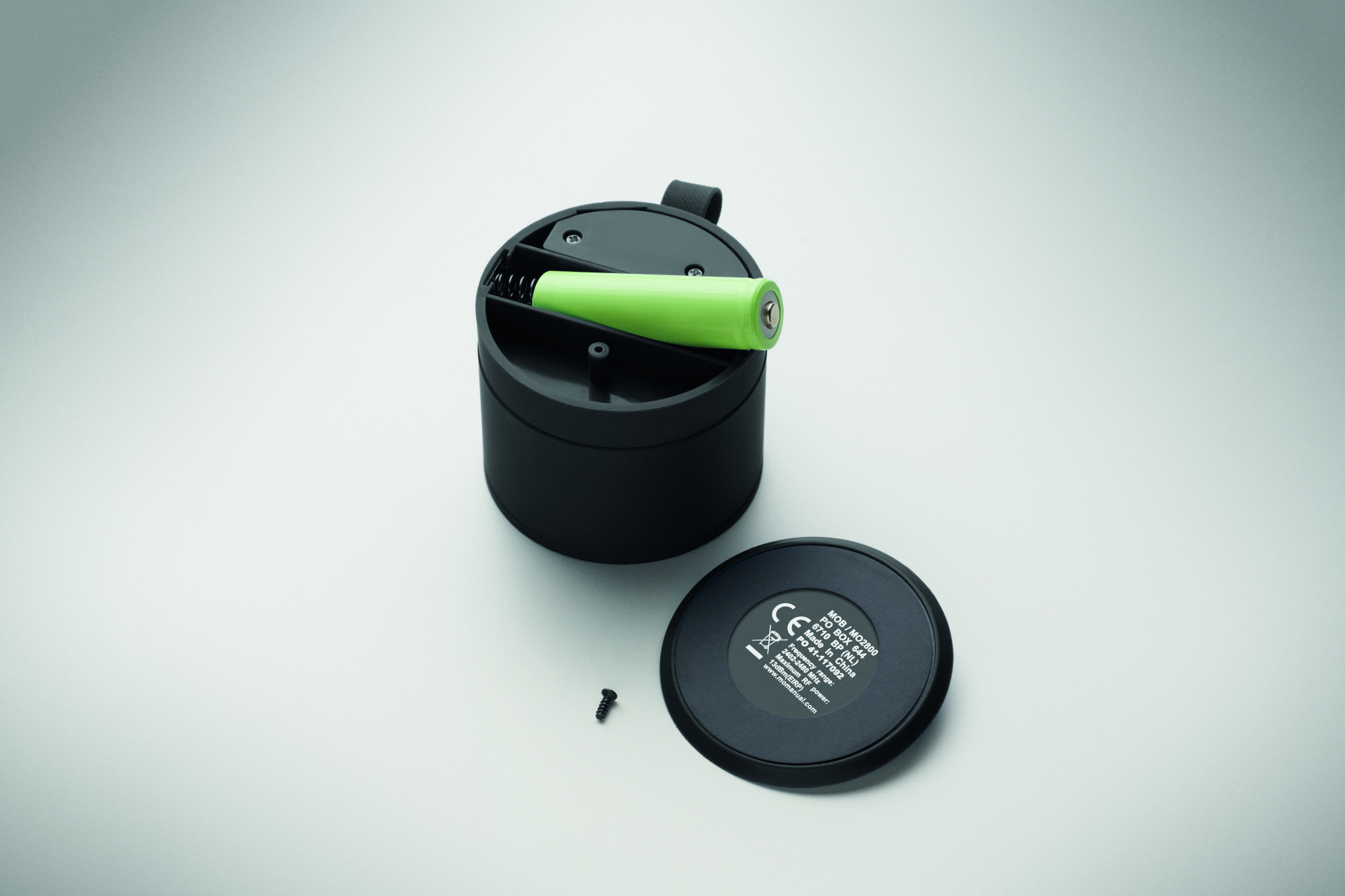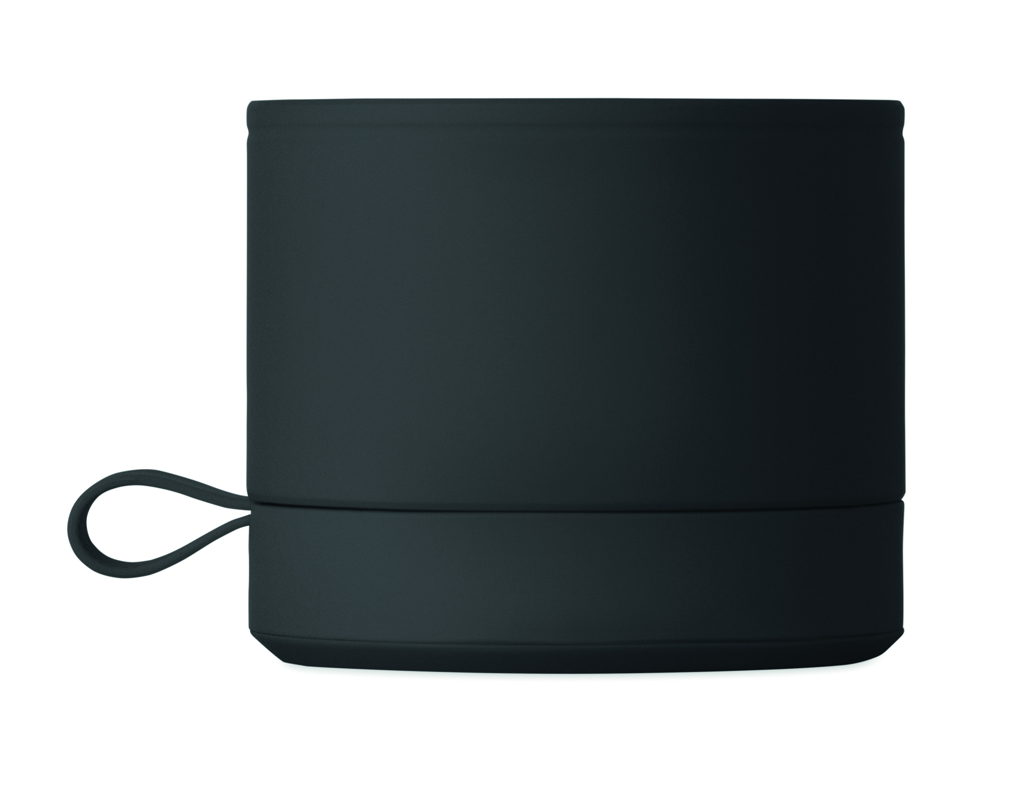 Langaton 5.1-kaiutin, jossa metallirunko ja kumipinta. 3 W monoääni. Sisältää ladattavan ja vaihdettavan 500 mAh akun. Kompakti ja moderni muotoilu.
