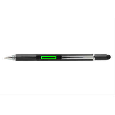 Kynä usealla toiminnolla: viivoitin (7cm), vatupassi, ruuvimeisseli, kosketuskynän pää ja kuulakärkikynä sinisellä musteella (jopa 400m). Tehty korkealaatuisesta messinkimateriaalista alumiiniklipillä.