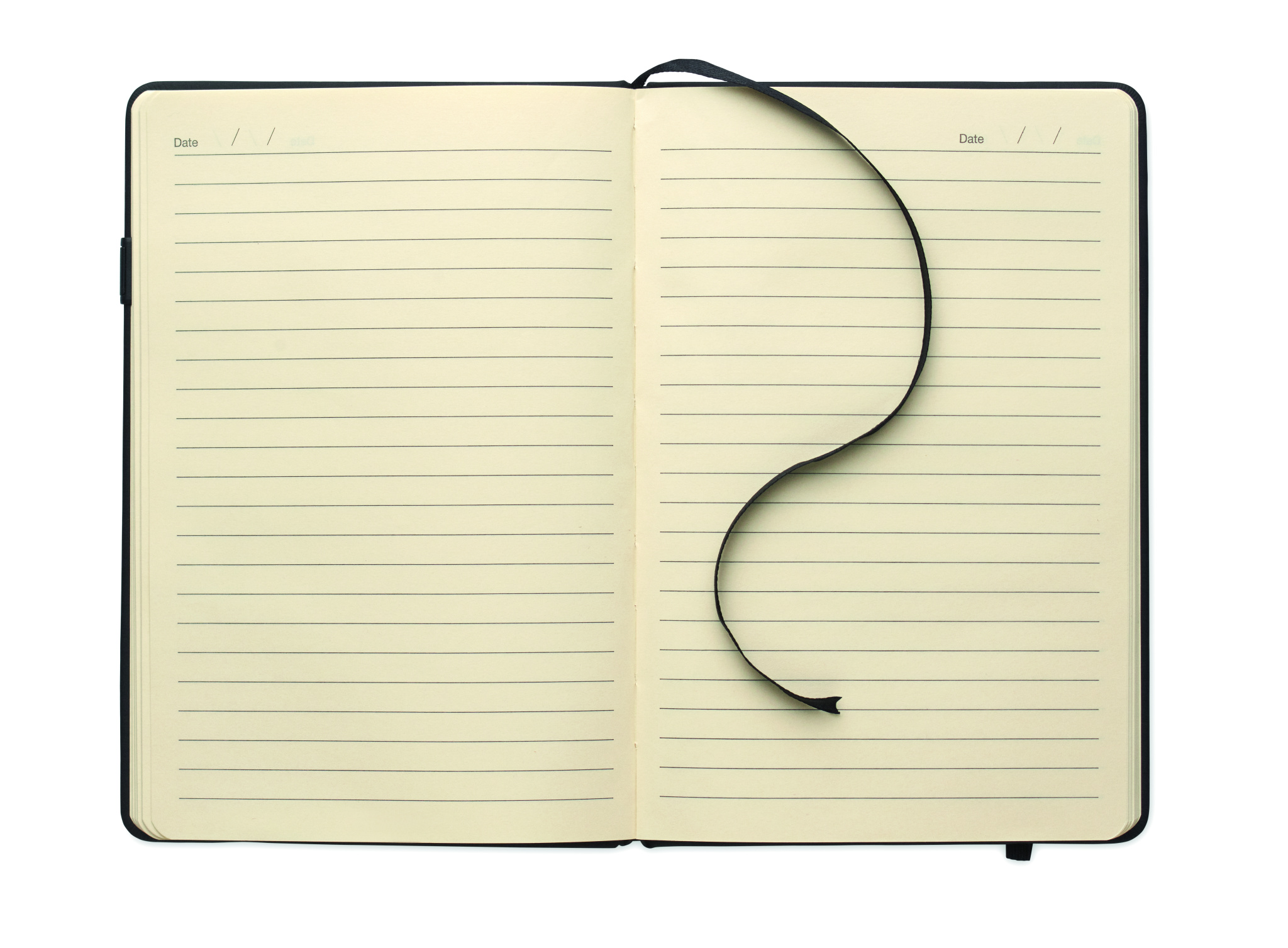 A5-kokoinen kovakantinen muistikirja, joka on valmistettu 58 % kierrätetystä polyesteristä ja 42 % PU:sta. Mukana integroitu 16 Gt:n USB-tikku. Kovakantinen. 160 viivoitettua sivua (80 arkkia) kierrätyspaperista. Sopiva joustava suljinnauha ja kirjanmerkkinauha FSC®-certified | FSC MIX CREDIT, P7.1, FSC-C213206